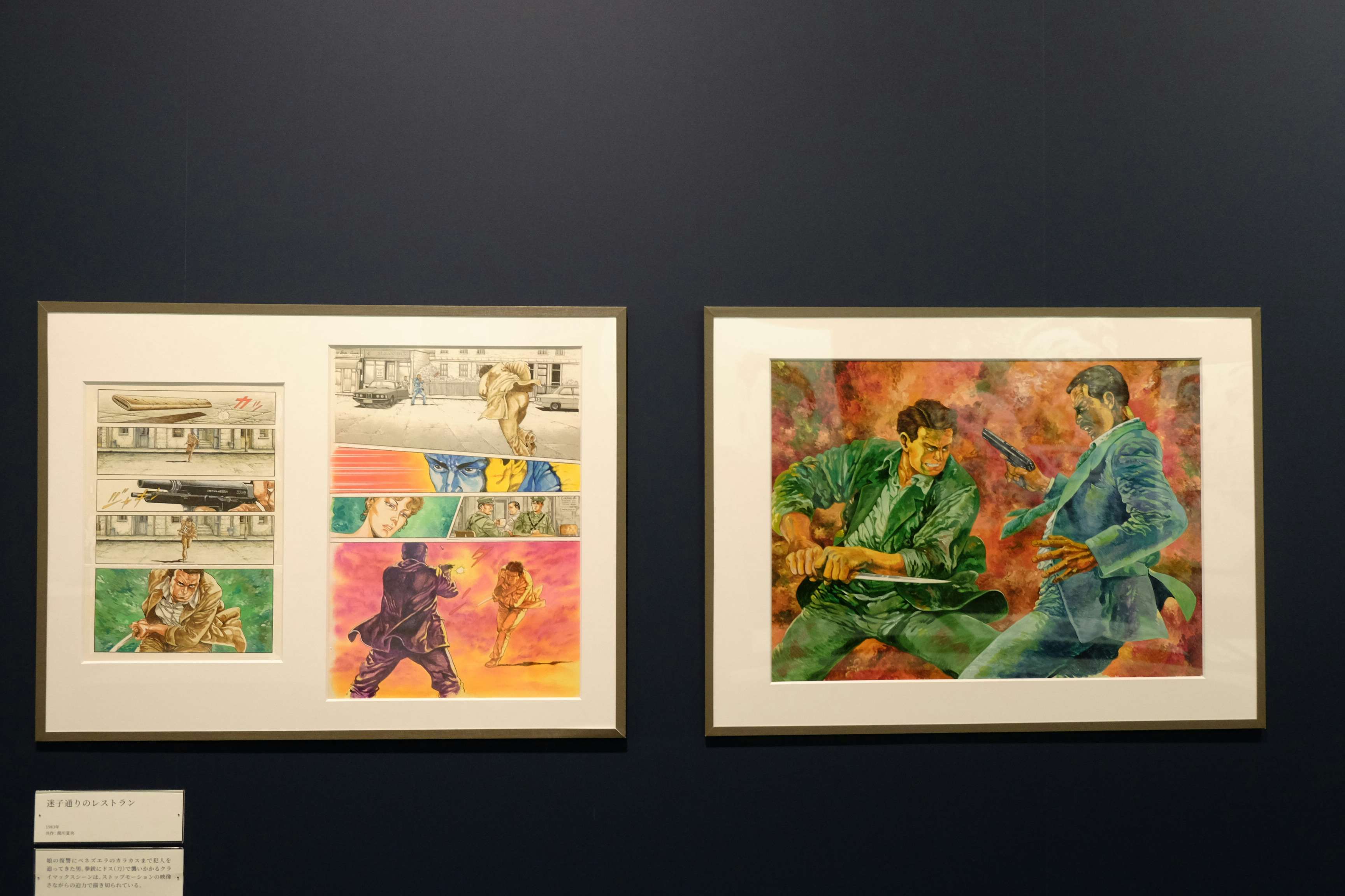 展示風景より、左から『1997年の暗殺者』と『エネミーゴ』のカラー原画