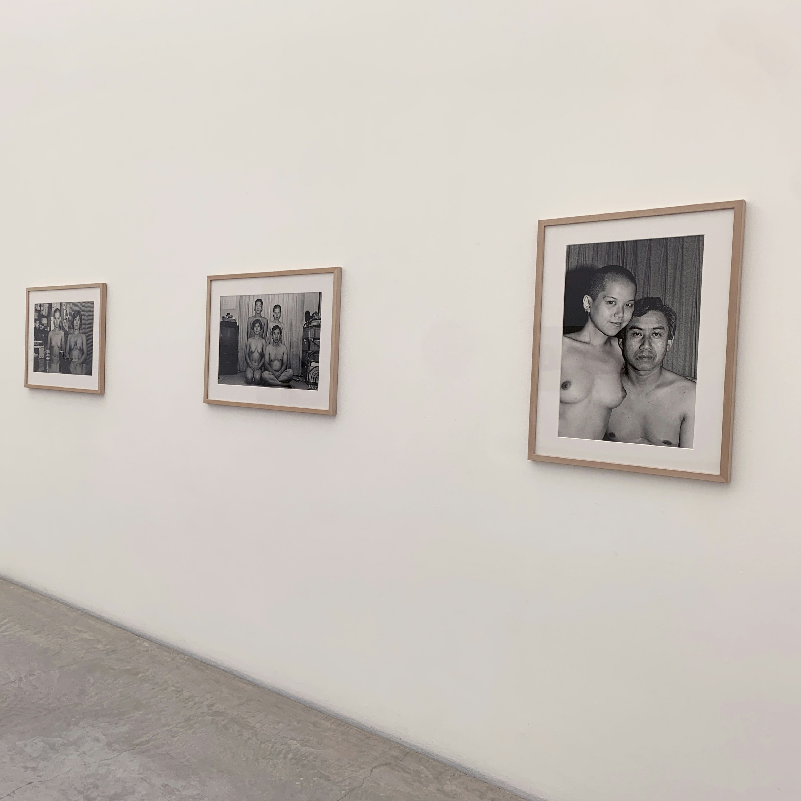 はじめの展示室には、長島のデビュー作「Self-Portrait」シリーズや、嫁いでいく女性の顔を赤い布で隠すという、祖母が生まれ育った中国の村の風習を自身のヌードで再現した潘逸舟の《無題》(2006/2021)、そしてセルフポートレイトとして撮影した身体のパーツを性を暗喩するアイコンで切り抜いた《存在の隠れ家》(1993/2021)など、身体を用いた表現が集まっている。