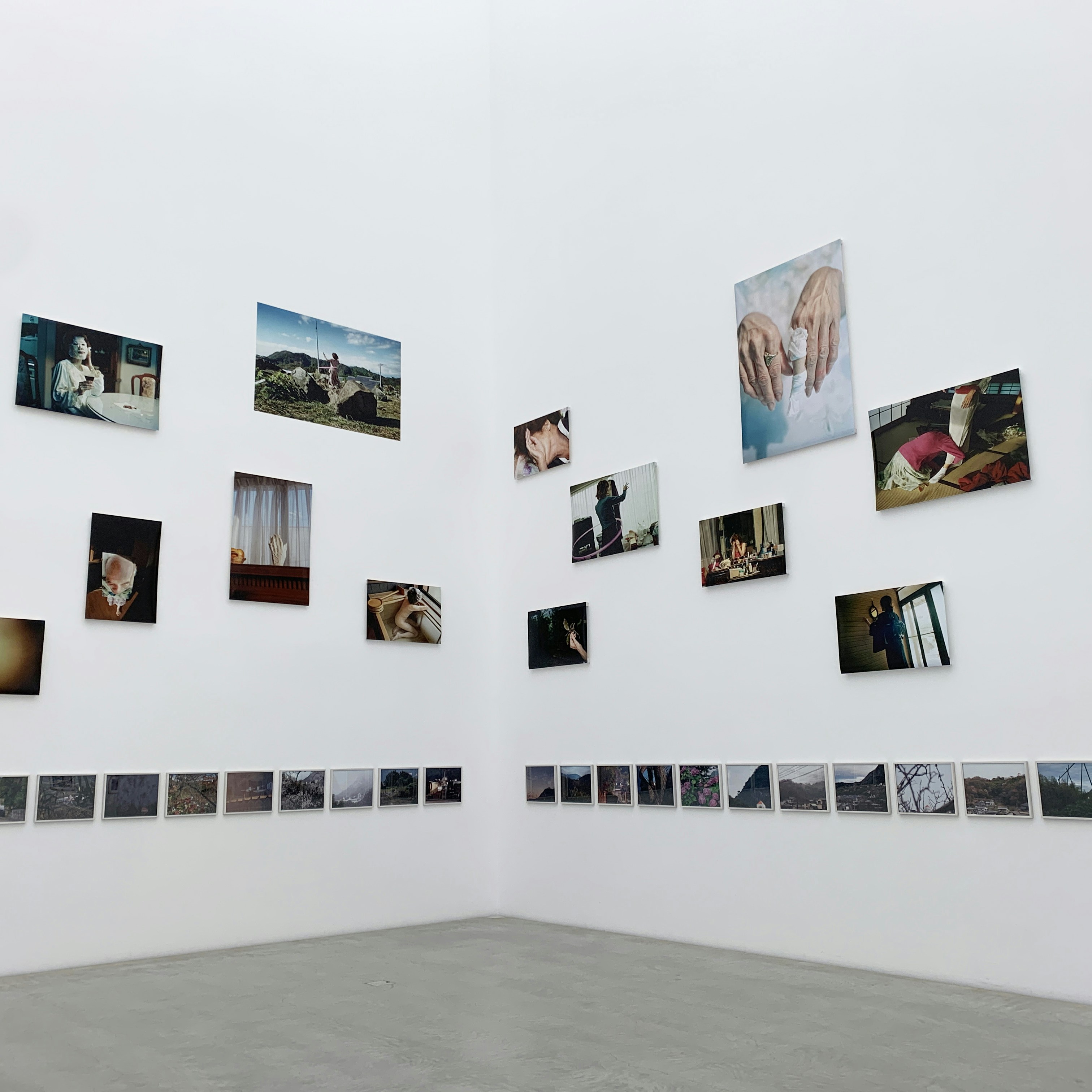 そして、静かな作品群のなかにリズムを与えるのが小林耕平の《殺・人・兵・器》(2012)だ。同作は美学者・伊藤亜沙のテキストを起点に、身体を変容させる一種の「兵器」を生み出す試み。その後には、早逝した妹をめぐる写真からなる岩根愛の《My Cherry》(2020)などの作品、そして制作と家事の往還のなかで生まれたという渡辺豪の《まぜこぜの山》(2016)が続く。