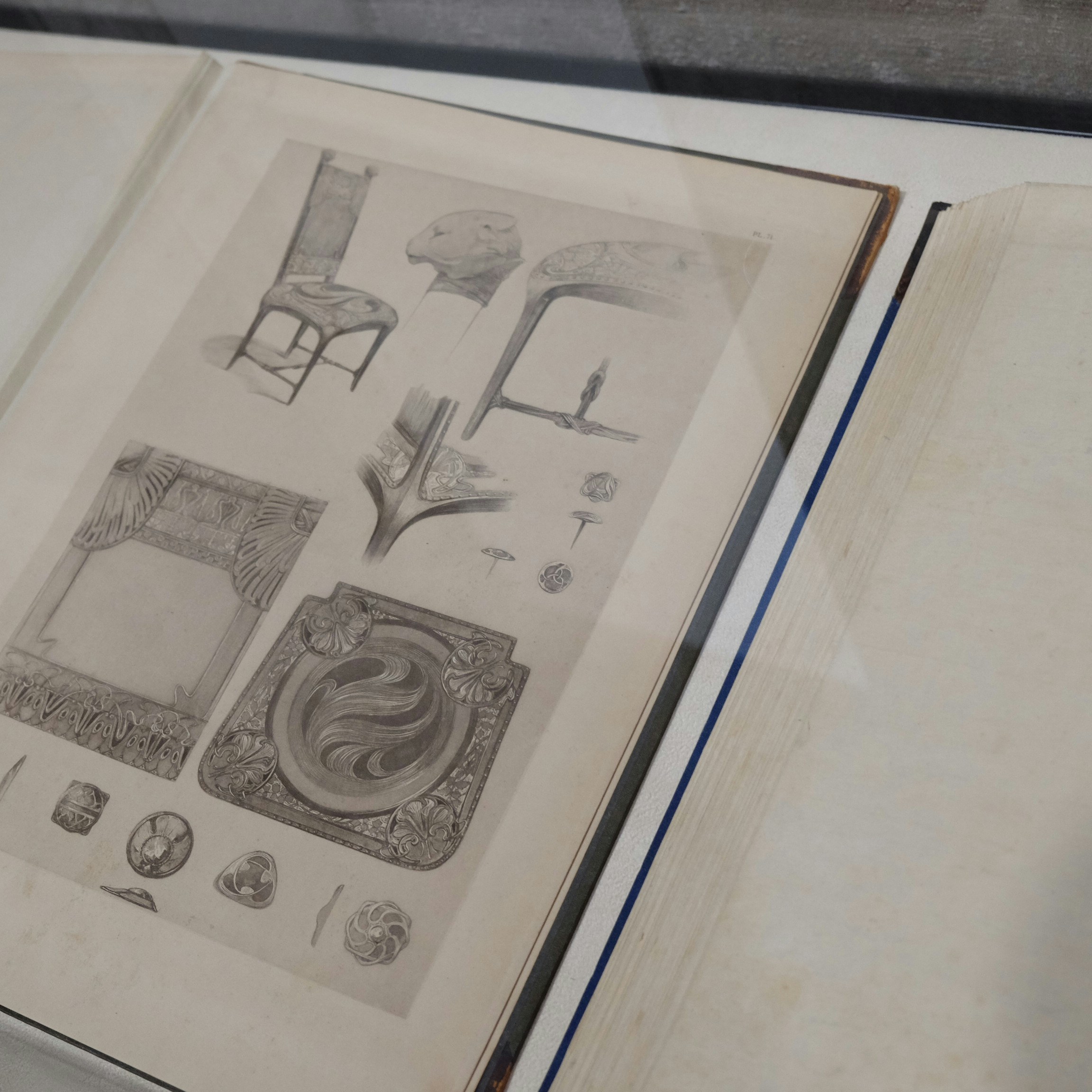 1905年に京都に生まれた白井は、正規の建築教育を受けていないとされており、独学の建築家とも称されてきた。しかし、今回の展覧会にあたって検証をしたところ、学んでいた京都高等工芸学校の図案科では近代建築のパイオニアである本野精吾が教鞭をとっており、その前任者も建築家・武田五一であったことから、その影響を受けた可能性があることがわかった。会場では、白井本人のものではないが、京都高等工芸学校図案科の講義ノートなどを展示。当時流行していたアール・ヌーボーやアール・デコの建築が教材となっており、白井もその薫陶を受けていた可能性が示唆される。