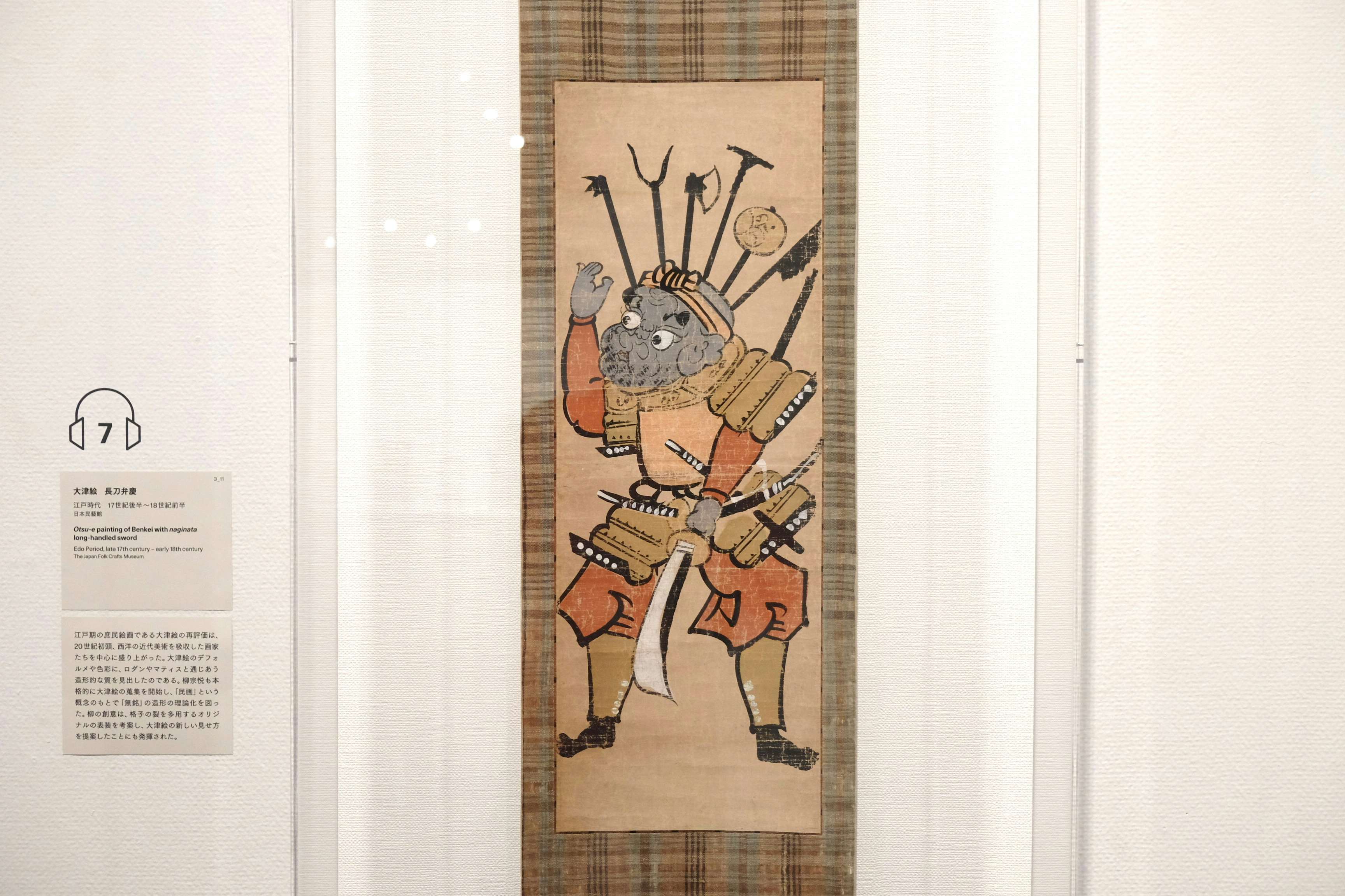 展示風景より、長刀弁慶の大津絵(江戸時代、17世紀後半〜18世紀前半)日本民藝館蔵 前期展示