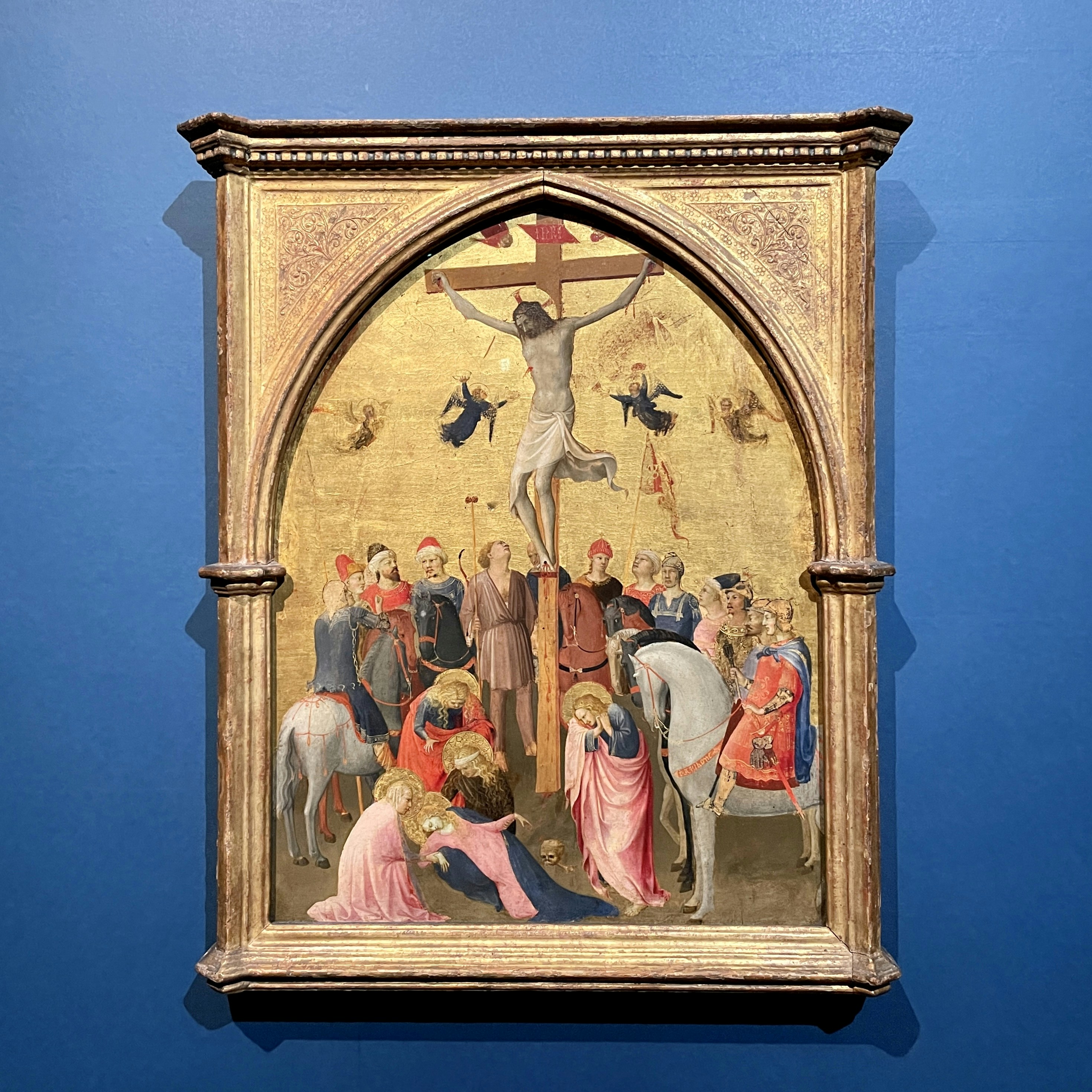 15世紀から16世紀にかけてイタリアを中心にヨーロッパ各地で隆盛したルネサンス文化は、「神と信仰を中心とした中世の世界観に対して、それに先立つ古代ギリシャ・ローマの人間中心の文化を理想とみなし、その『再生(ルネサンス)』を目指したもの」(リリースより)。例えば、初期ルネサンスのイタリアを代表する画家のひとり、フラ・アンジェリコの《キリストの磔刑》(1420-23頃)では、イエスを私たちと同じ感情と生身の肉体を持つ人間として描くことで、いっそうの共感を呼ぶ。