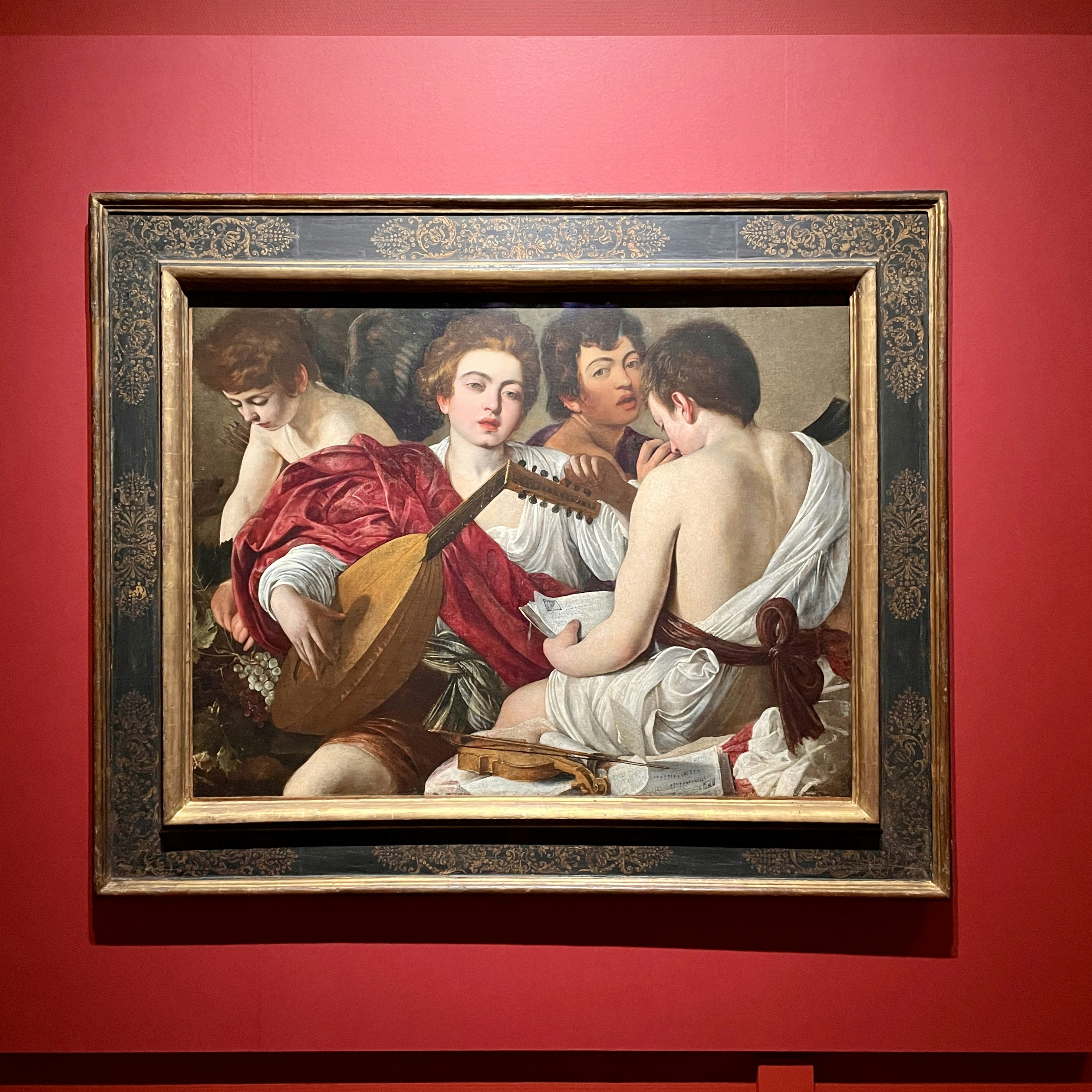 前者は、26歳のカラヴァッジョが最初のパトロンとなったデル・モンテ枢機卿のために制作したもので、少年たちが音楽を演奏している情景を描いている。また、画面の左端にはキューピッドが描かれており、合奏の情景の単なる再現ではなく、「音楽」と「愛」の寓意が主題として考えられている。劇的な写実描写や激しい明暗表現が特徴的なカラヴァッジョは、17世紀のヨーロッパに普及したバロック様式の立役者ともなった。