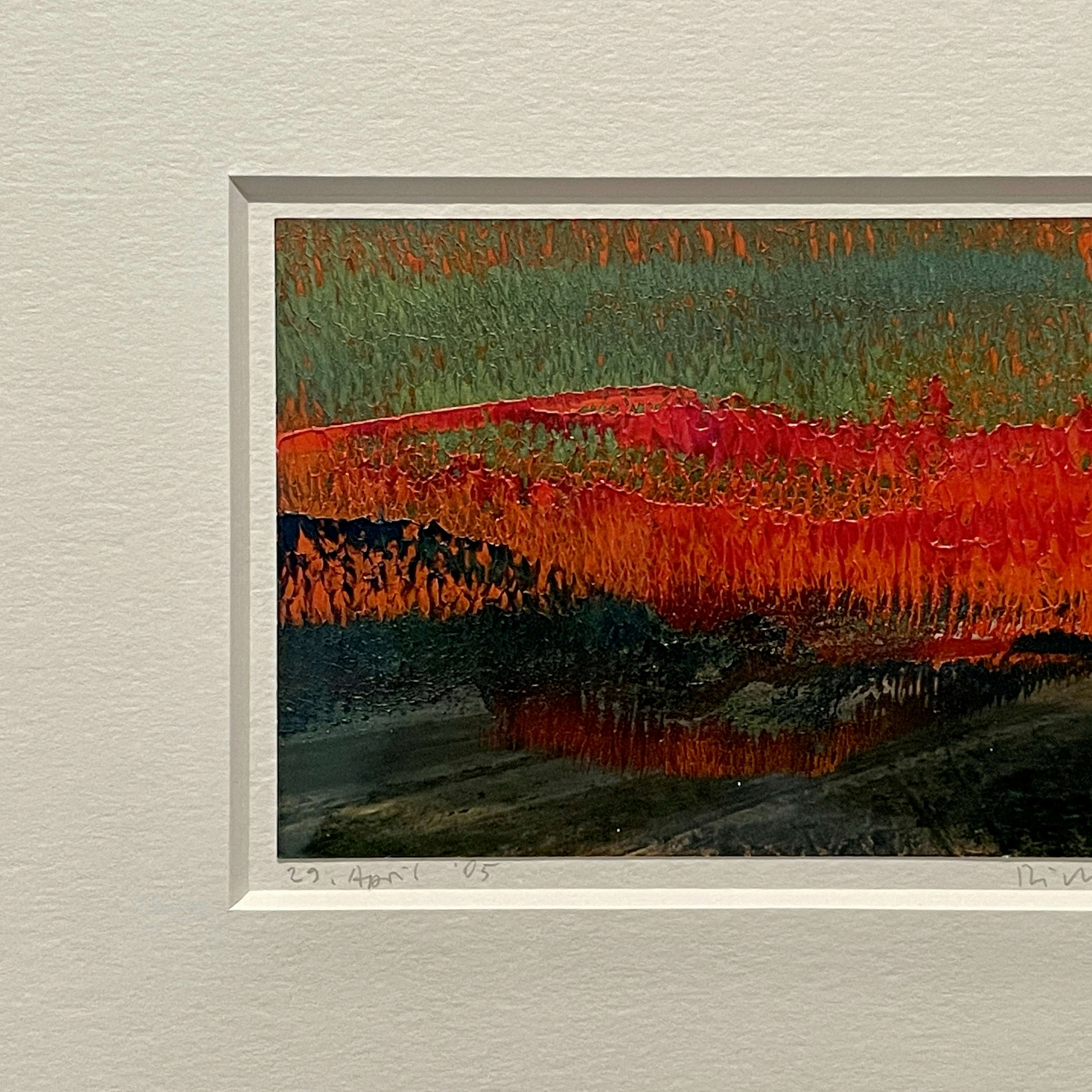 展示冒頭を飾るのは、写真にペインティングを施した作品群。「Grauwald(グレイの森)」シリーズと《28. April '05》《29. April '05》(ともに2005)は、ともに白黒またはカラー写真のプリントに重ね塗りをほどこしたもの。支持体となった写真のモチーフはほとんど絵具で覆われており判別が難しいが、それがかえって想像力を掻き立てる。