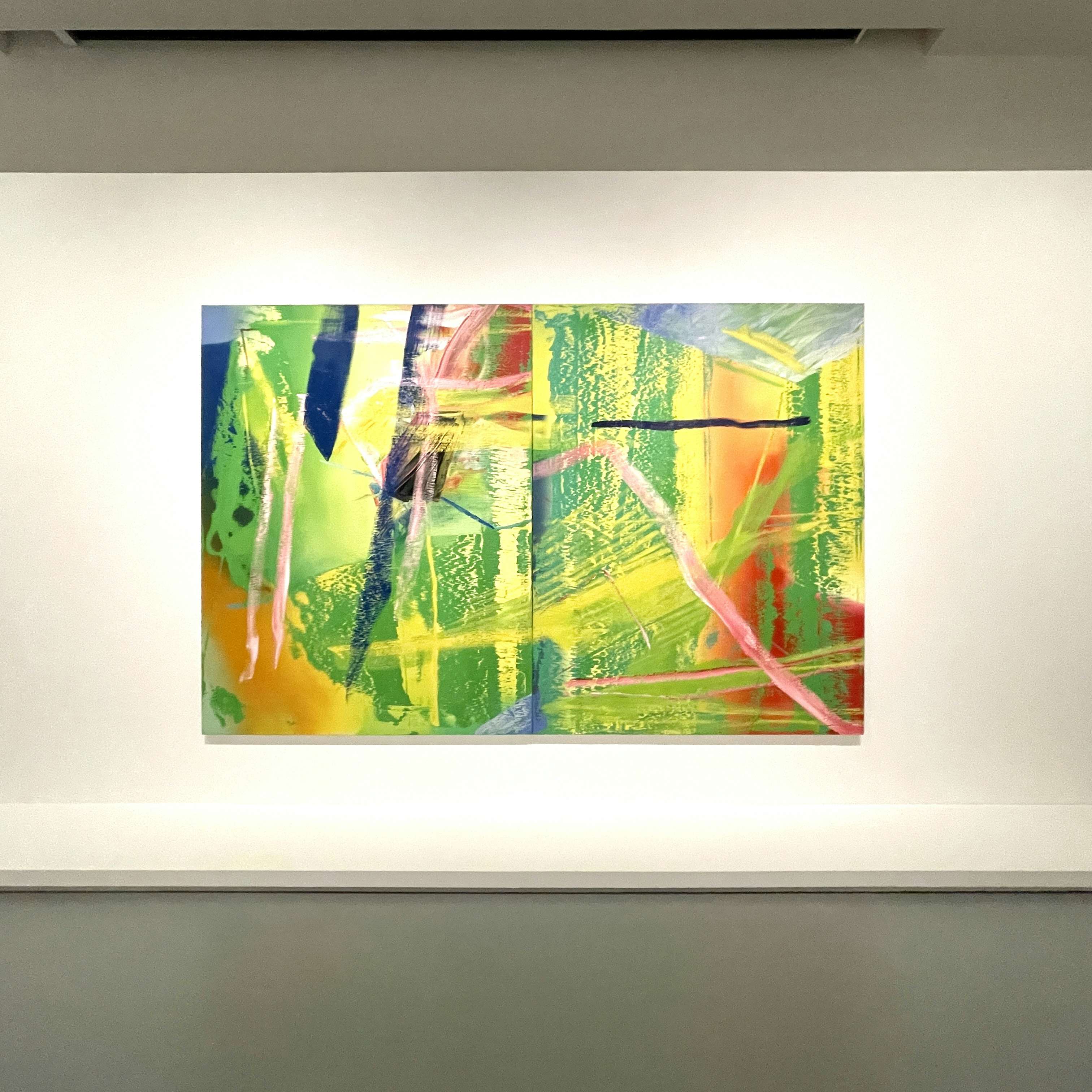 これを抜けた先には、広い展示空間と大型作品が待ち構える。会場奥で一際明るい光を放つのは、横4メートルにおよぶ二連画《Lilak》(1982)だ。