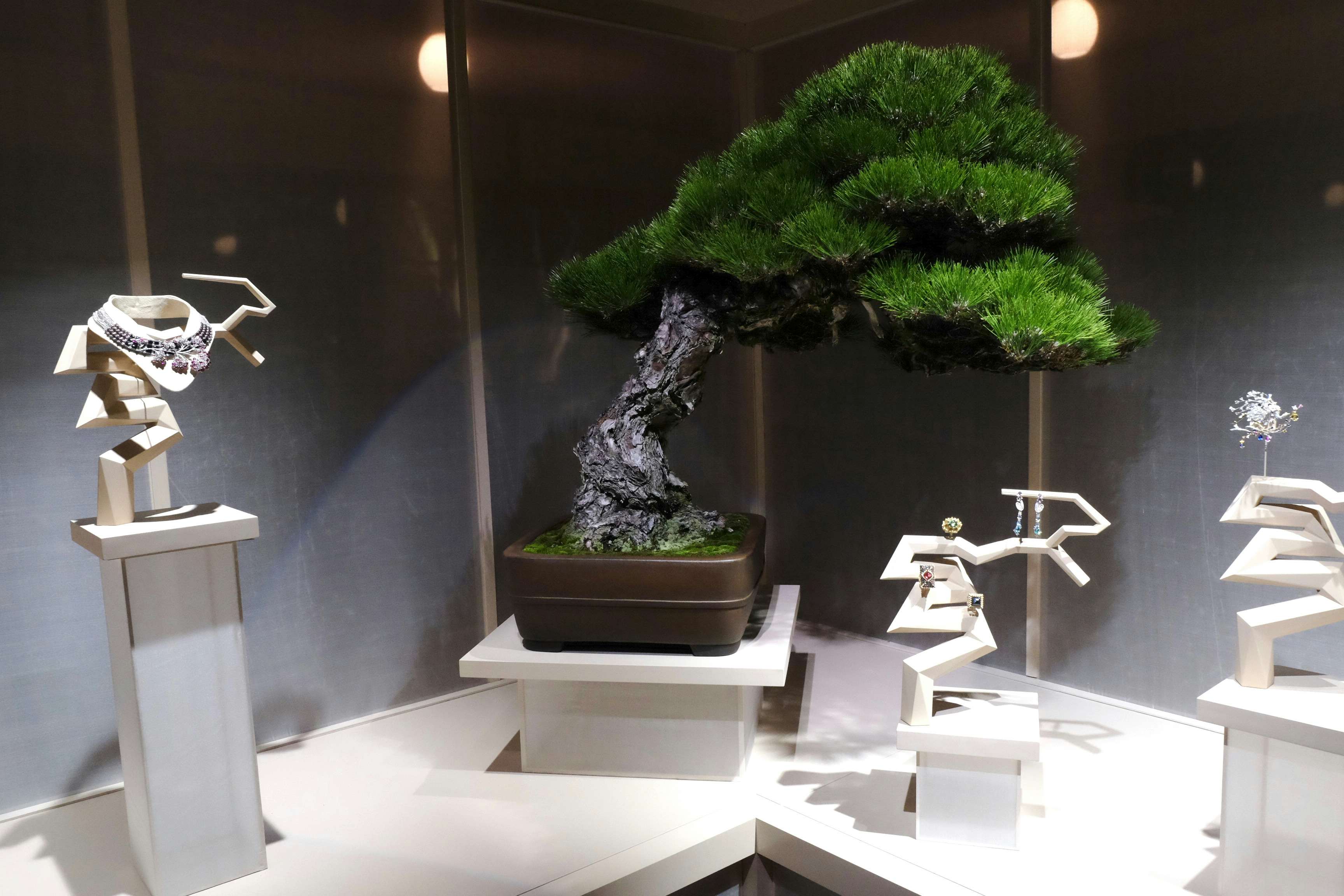 展示風景より、木村正彦の盆栽とショーメのジュエリー
