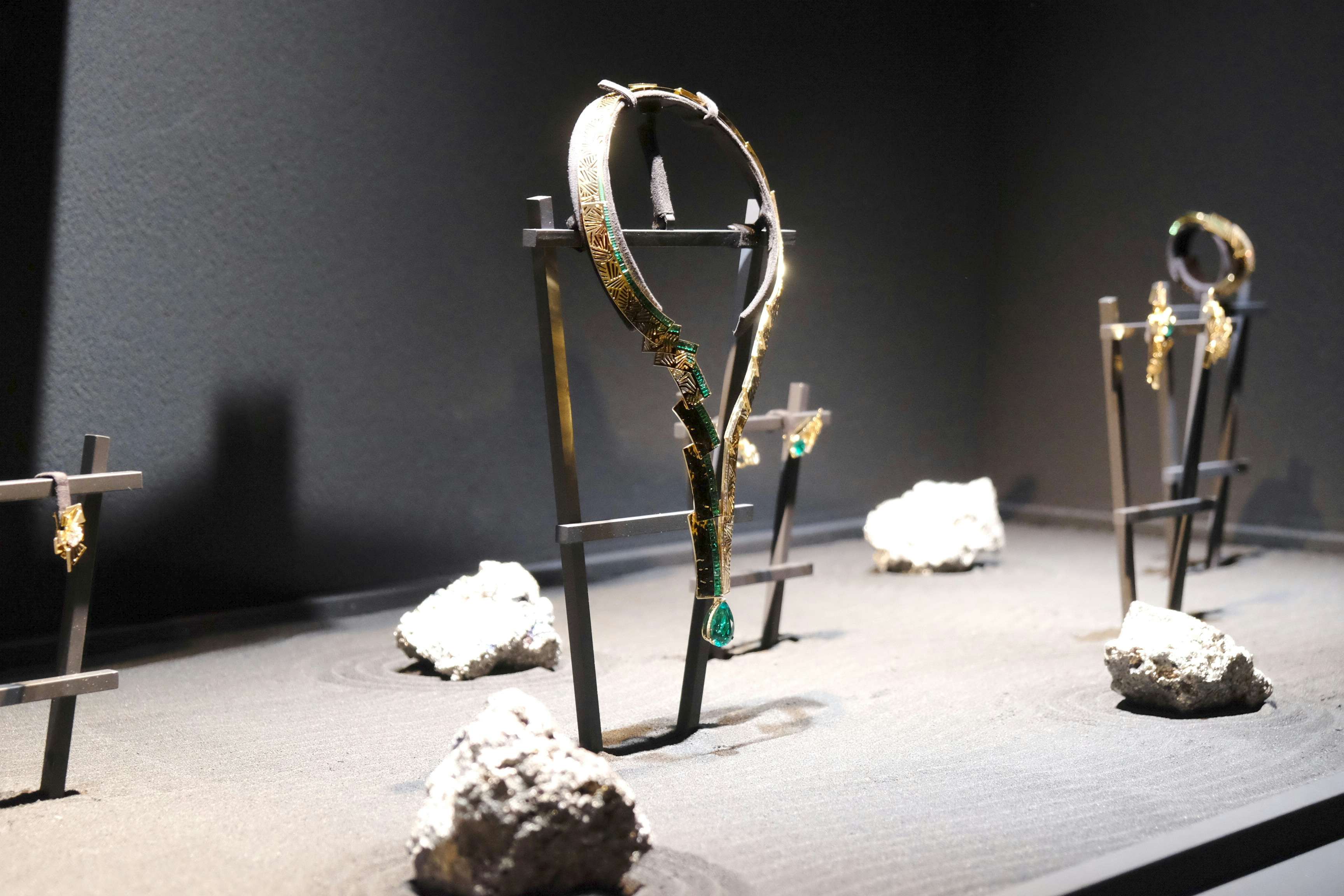 展示風景より、月山貞利による刀とショーメのジュエリー