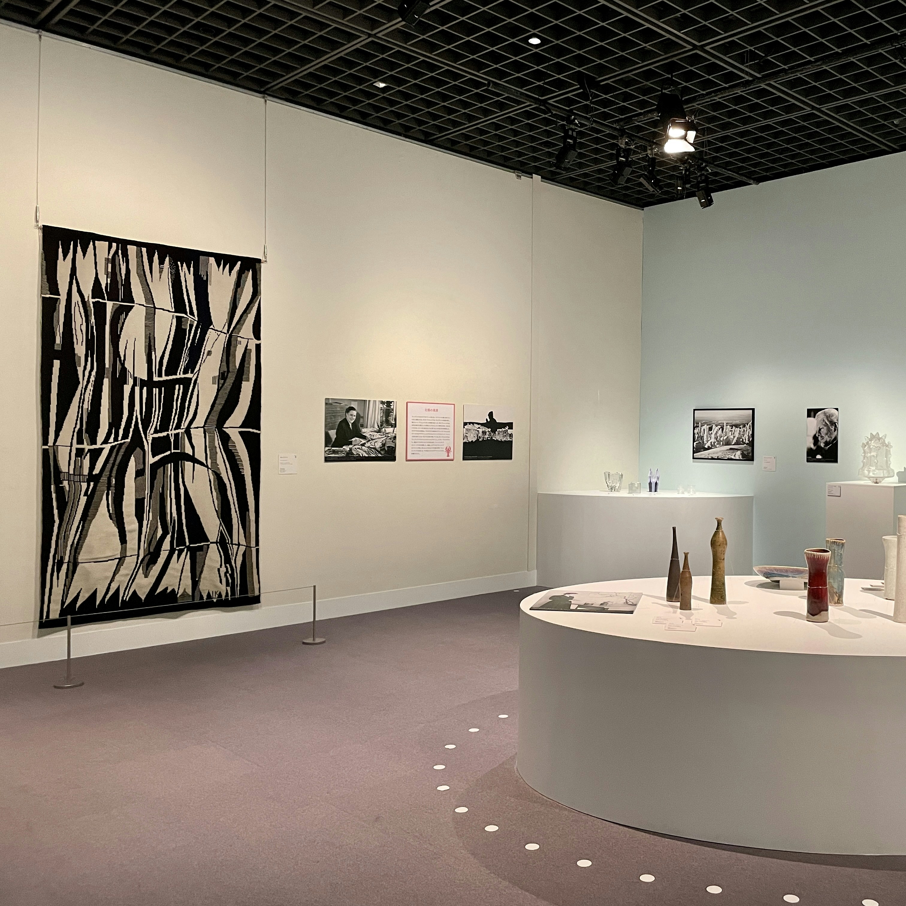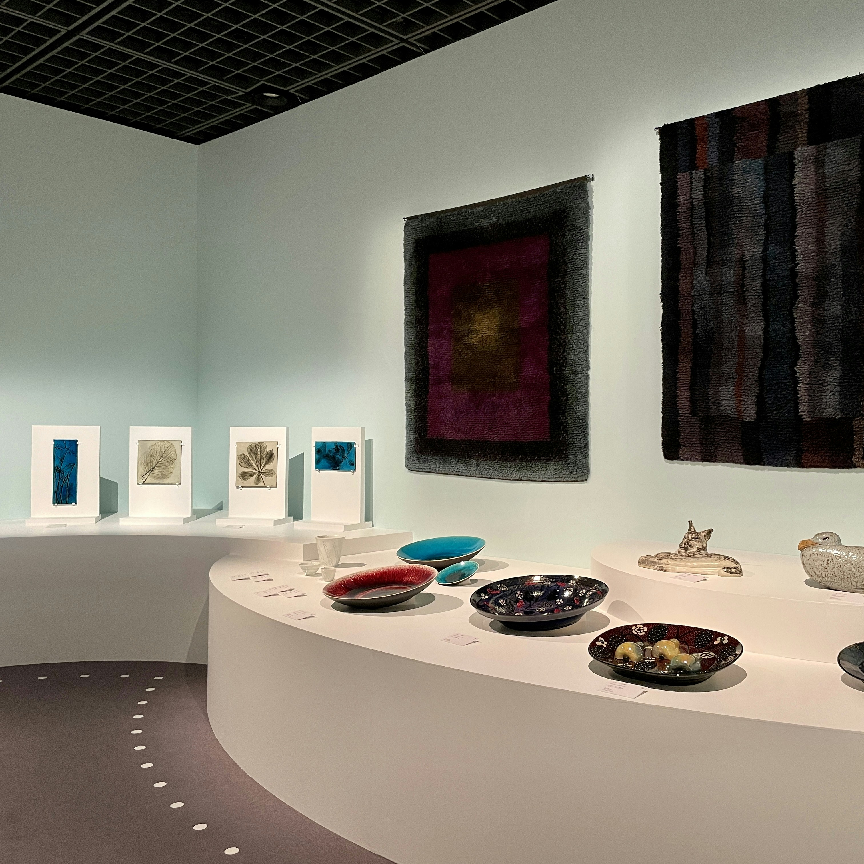 第3章「モダニズムのアイコン」では、1951年のミラノトリエンナーレで出品し、大きな名声を博したタピオ・ヴィルッカラの花瓶《杏茸》や合板のレリーフ《葉》をはじめ、陶磁器の分野において活躍したトイニ・ムオナやキュッリッキ・サルメンハーラなどの女性アーティストの作品、そしてウフラ=ベアタ・シンベリ=アールストロムなどのテキスタイルデザイナーが生み出した芸術性の高いラグなどを観覧することができる。
