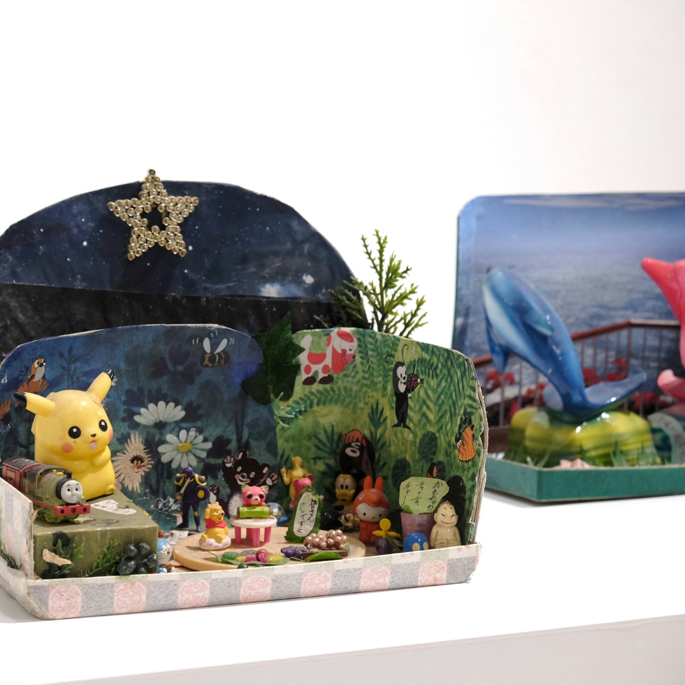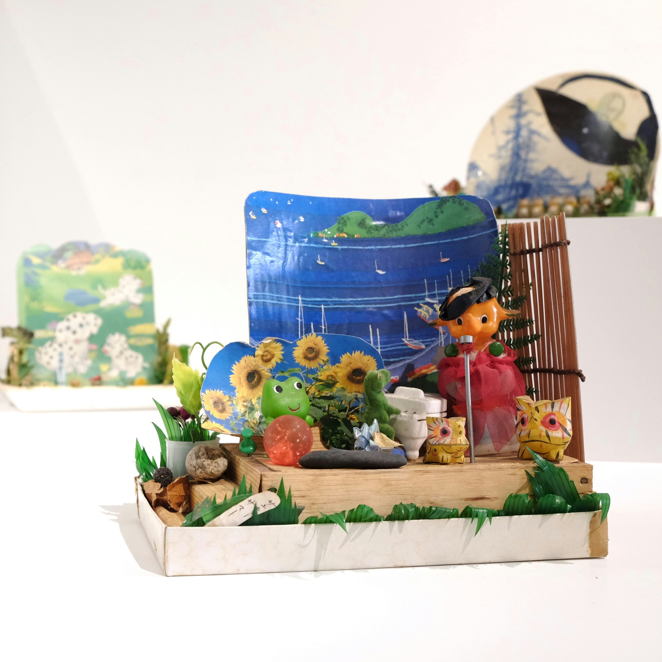 1934年生まれの荻野は、名画座・早稲田松竹で長年清掃員として働いてきた。勤務をするなかで荻野は、殺風景だったトイレの棚に飾るオブジェを作成し始める。食品トレイや菓子箱、おまけといった廃材を使ってつくりあげた独特の小さな箱庭は、やがて劇場を訪れる人のなかにファンを生み出していった。現在は施設に入居する荻野だが、往時の劇場の顔となっていた作品群を楽しみたい。