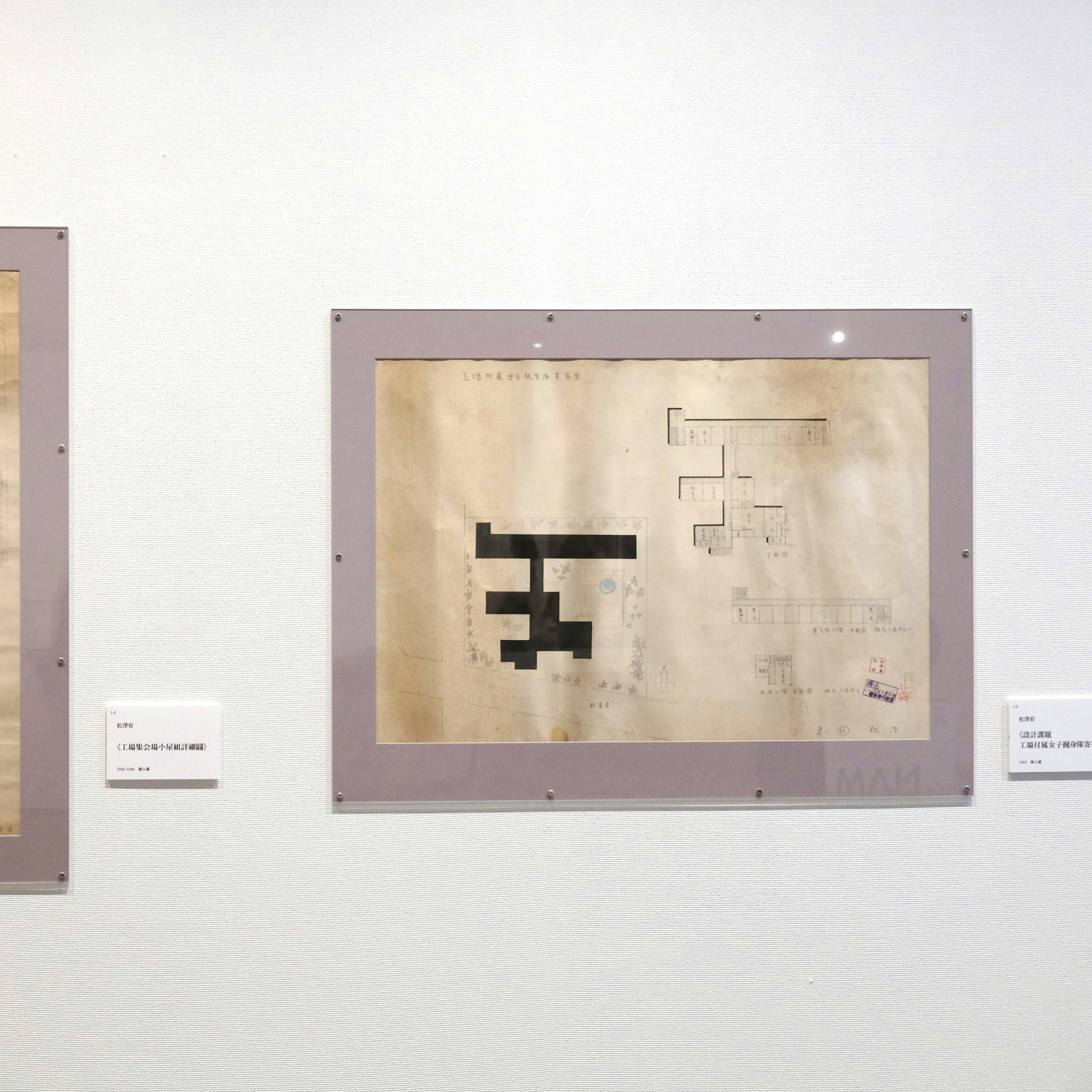 展示風景より、松澤宥が早稲田大学建築学科時代に引いた図面