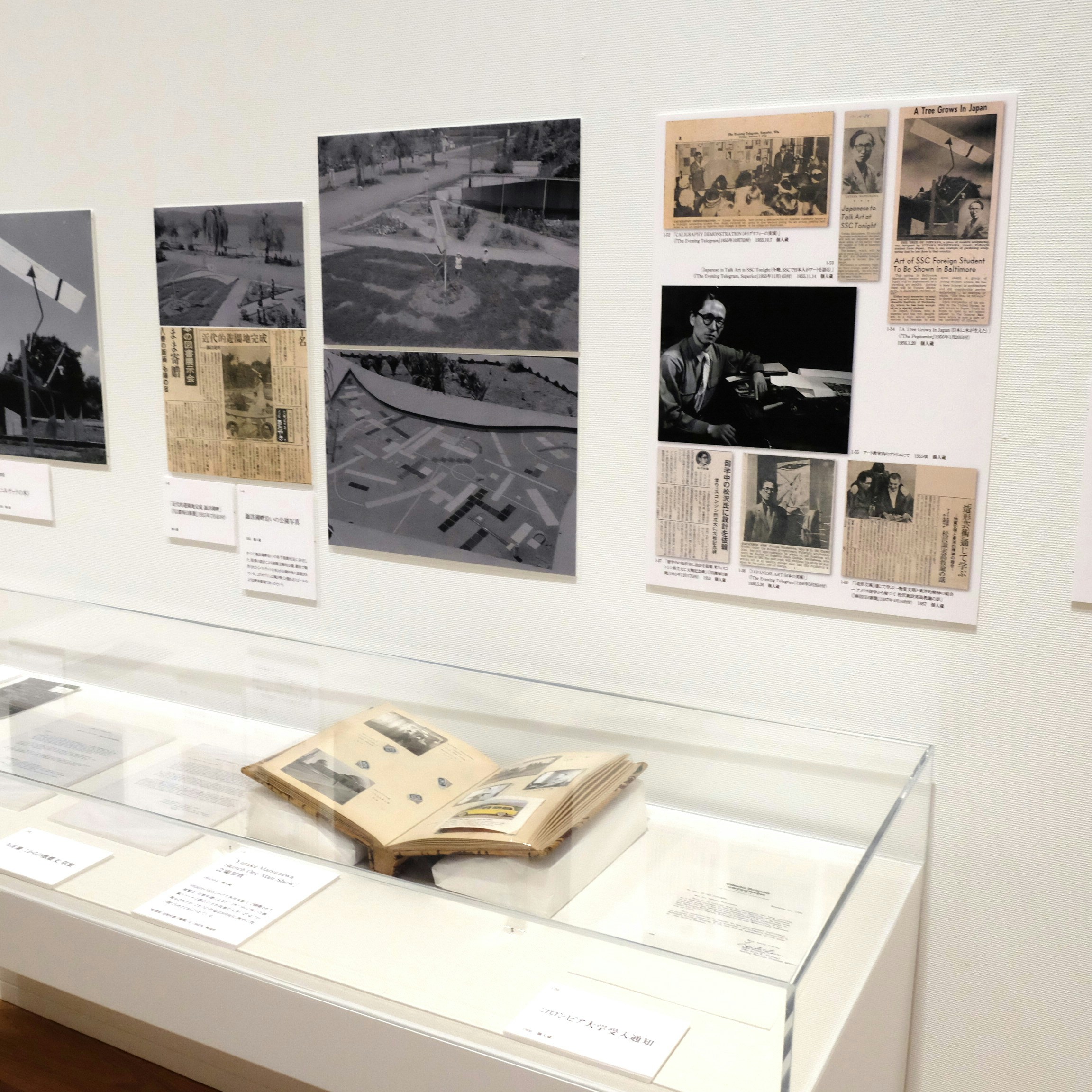 展示風景より、松澤宥の留学時の様子を伝える資料