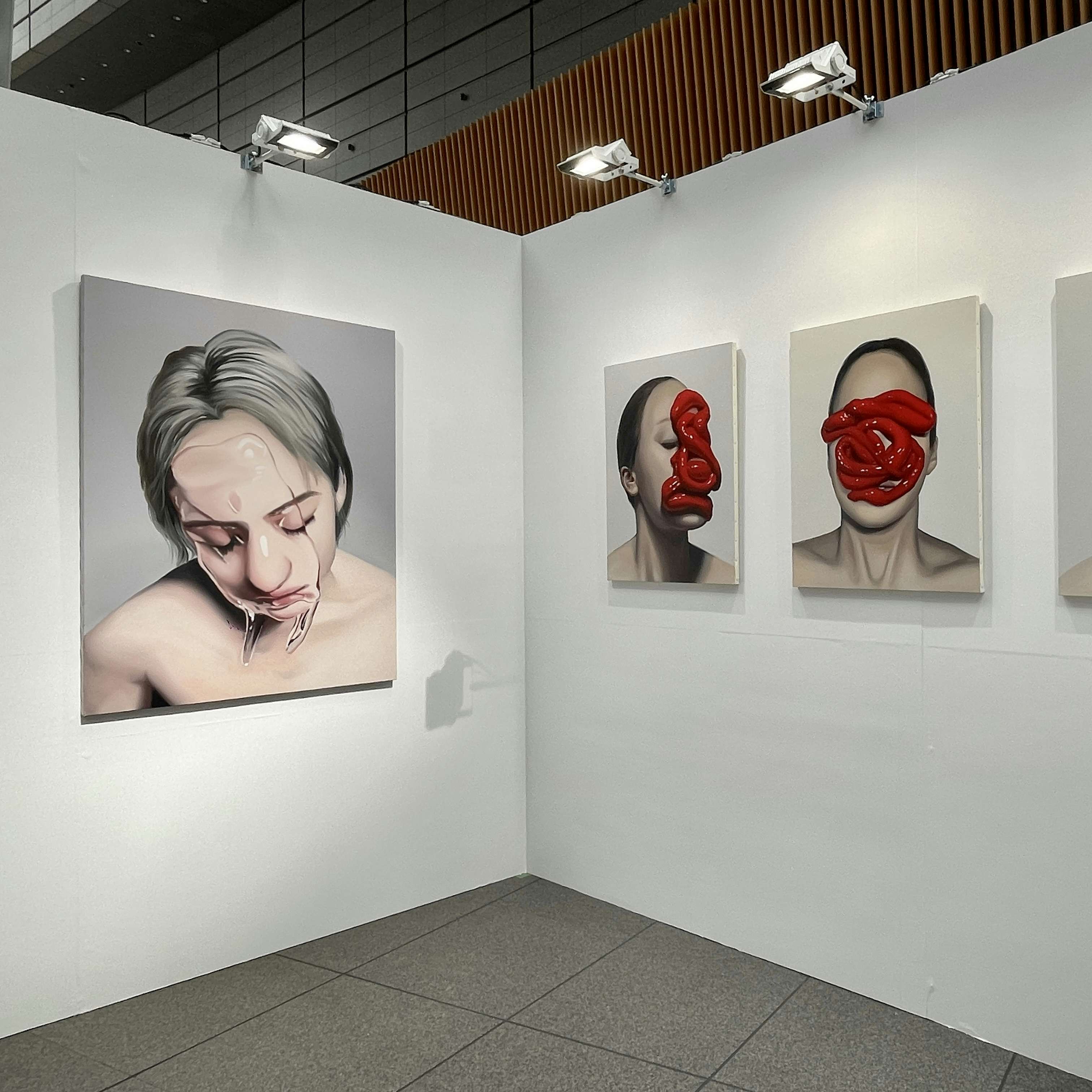 今年初めて出展したギャラリーのなか、東京・天王洲にあるTokyo International Galleryは画家の友沢こたおの個展を開催。昨年12月に「SCOPE MIAMI BEACH」アートフェアにも作品を展示した友沢は、その代表的なモチーフである「スライム」を赤ん坊や女性の顔に被った様子を描いた新作を発表。ギャラリーディレクターの谷本弥生によると、昨年マイアミで彼女の作品を見た顧客からも今回の作品に対して非常に反応があり、作品はすべてオープニング前に完売したという。