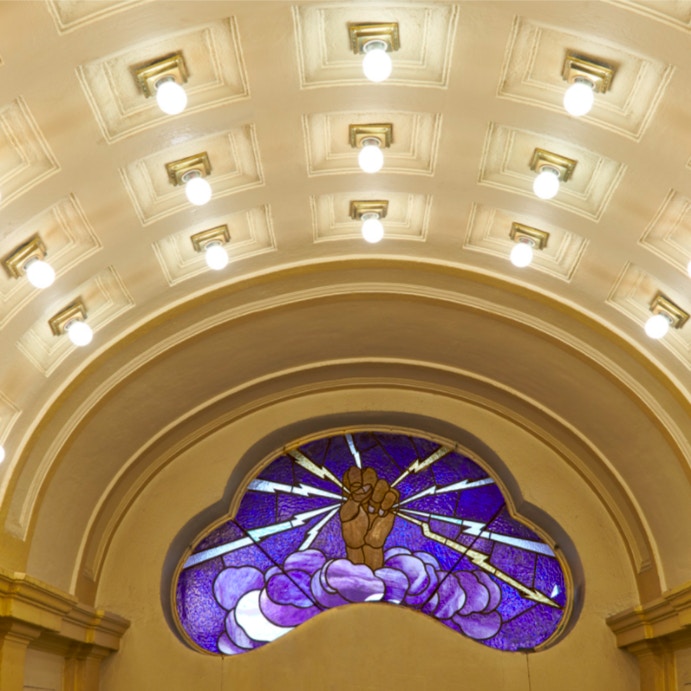 4つのフロアと広い屋外に広がる1万平方メートル以上の敷地には、アートギャラリーと発電施設のほか、アーティストのためのワークショップスペースやスタジオ、野外キッチンが設置されている。