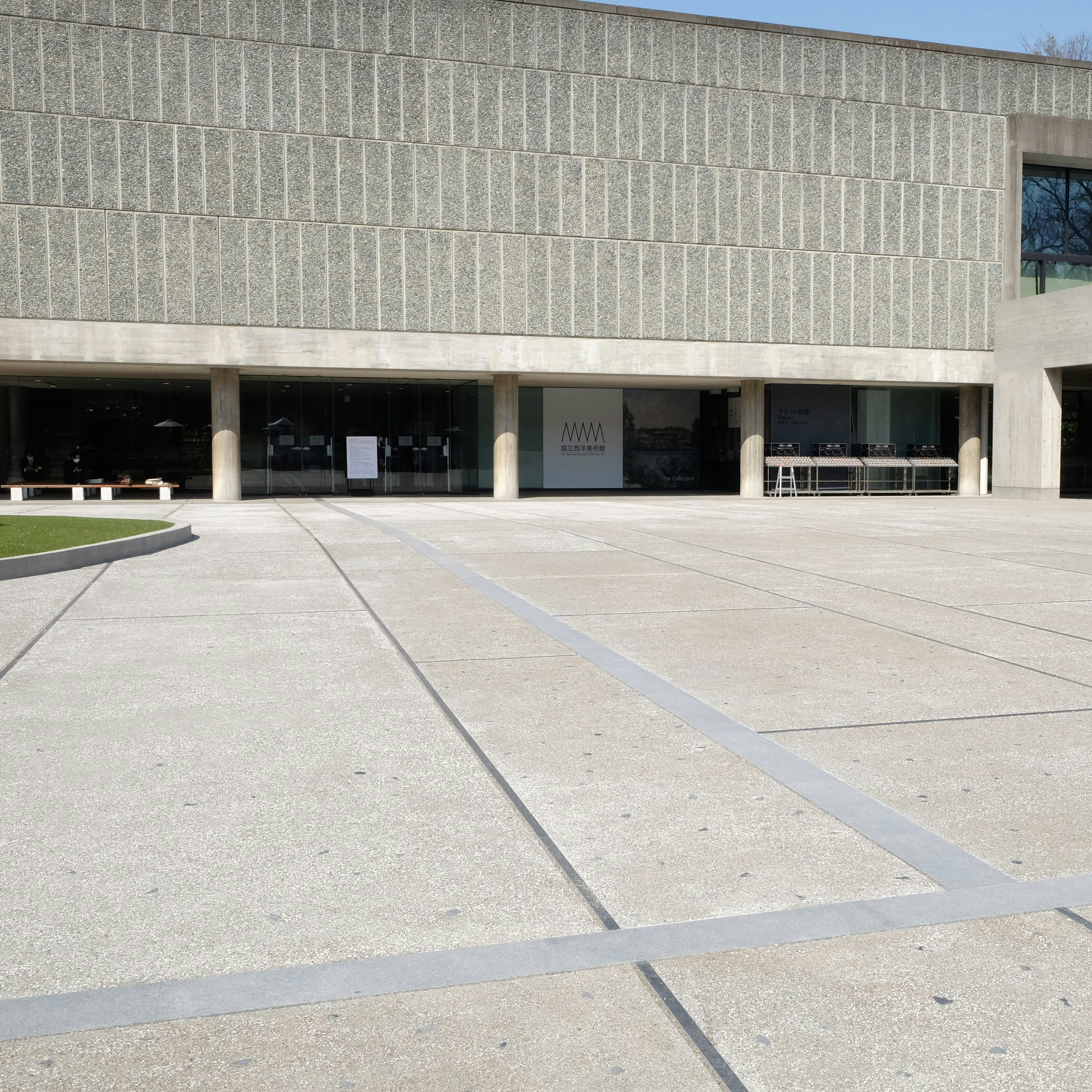 同館の開館時には、正門は上野公園の噴水広場に面した西側にあり、外部との連続性をもたせるために透過性のある柵で覆われていたという。また、前庭の床には来館者の動線となるような線が引かれており、自然と人が本館のピロティへと視界の変化とともに入っていけるように意図されていた。