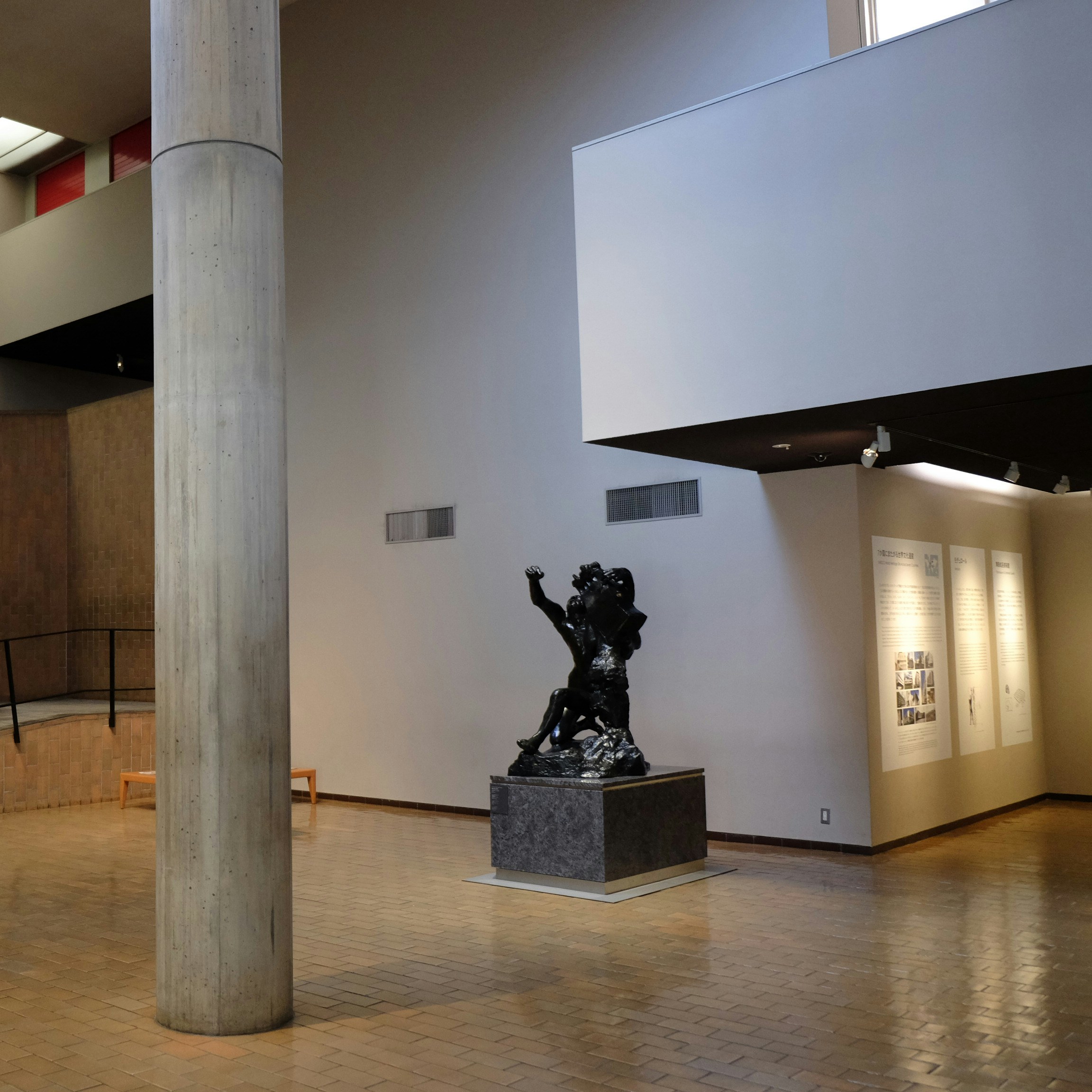 リニューアル後はこれまで有料エリアだった本館の吹き抜け空間「19世紀ホール」も無料公開となった。2階の展示室は、このホールを囲むように配置されており、スロープを昇ることで螺旋状の動線が生まれている。コルビュジエが設計時に立てたコンセプト「無限成長美術館」のアイデアが結実しているホールであり、リニューアルした前庭とともにその思想を感じたい。