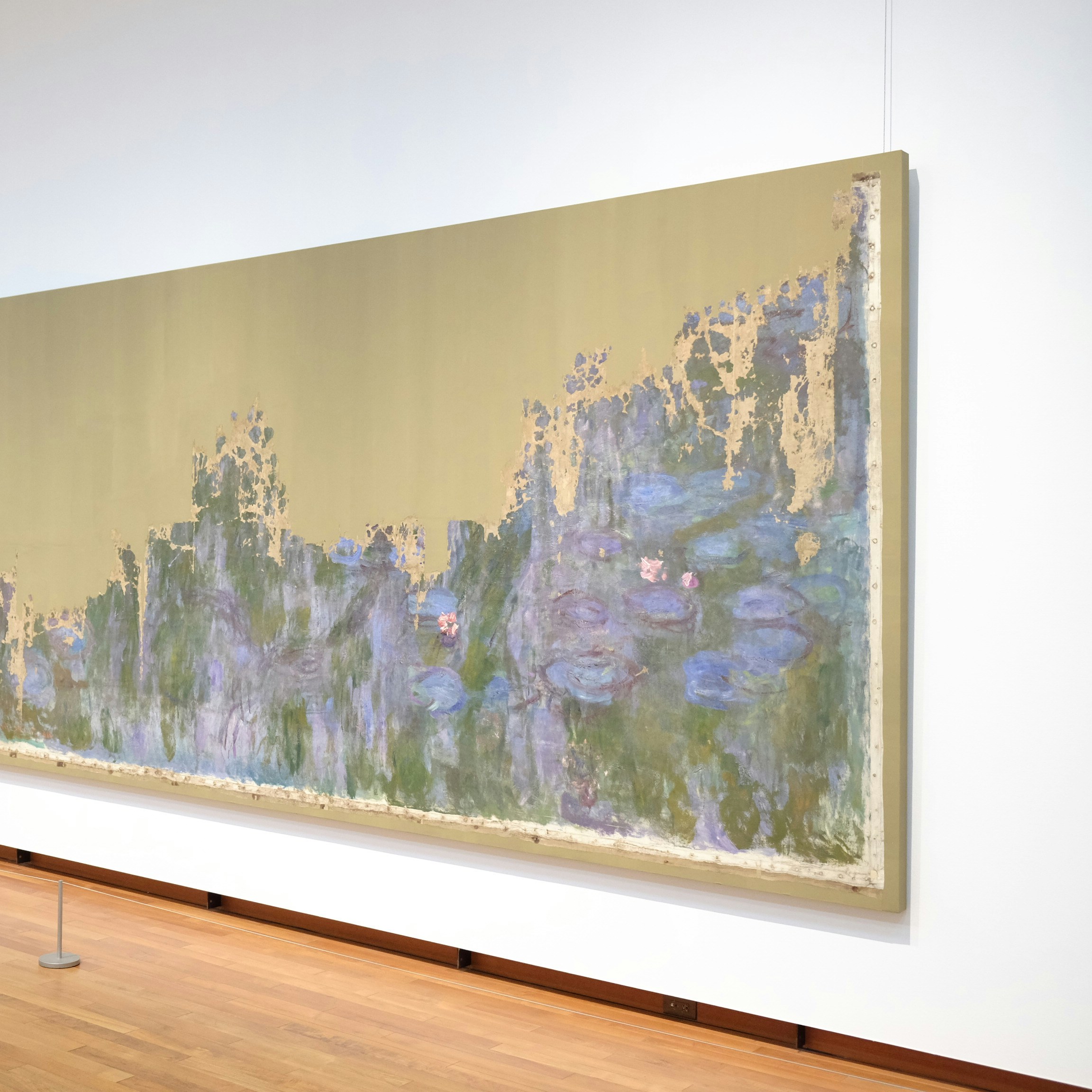 なかでも、モネの《睡蓮、柳の反映》(1916)は、「松方コレクション」の歴史を雄弁に語る作品といっていいだろう。痛々しく表面が剥離した本作は、かつて松方がモネ本人から購入したものの、第二次世界大戦中の疎開時に大きく損傷。その後は敵国人財産としてほかの松方コレクションと同様にフランス政府に接収された。本作は破損が大きかったために、その後の日仏友好のための返還リストに含まれず、長く忘れ去られていたが、2016年にルーヴル美術館で眠っていたものが見つかる。松方家に返還され、2017年に館に寄贈された。時代の流れに翻弄された本作は、美術が伝えていくものの大きさをこの時代に改めて感じさせるものといえるだろう。