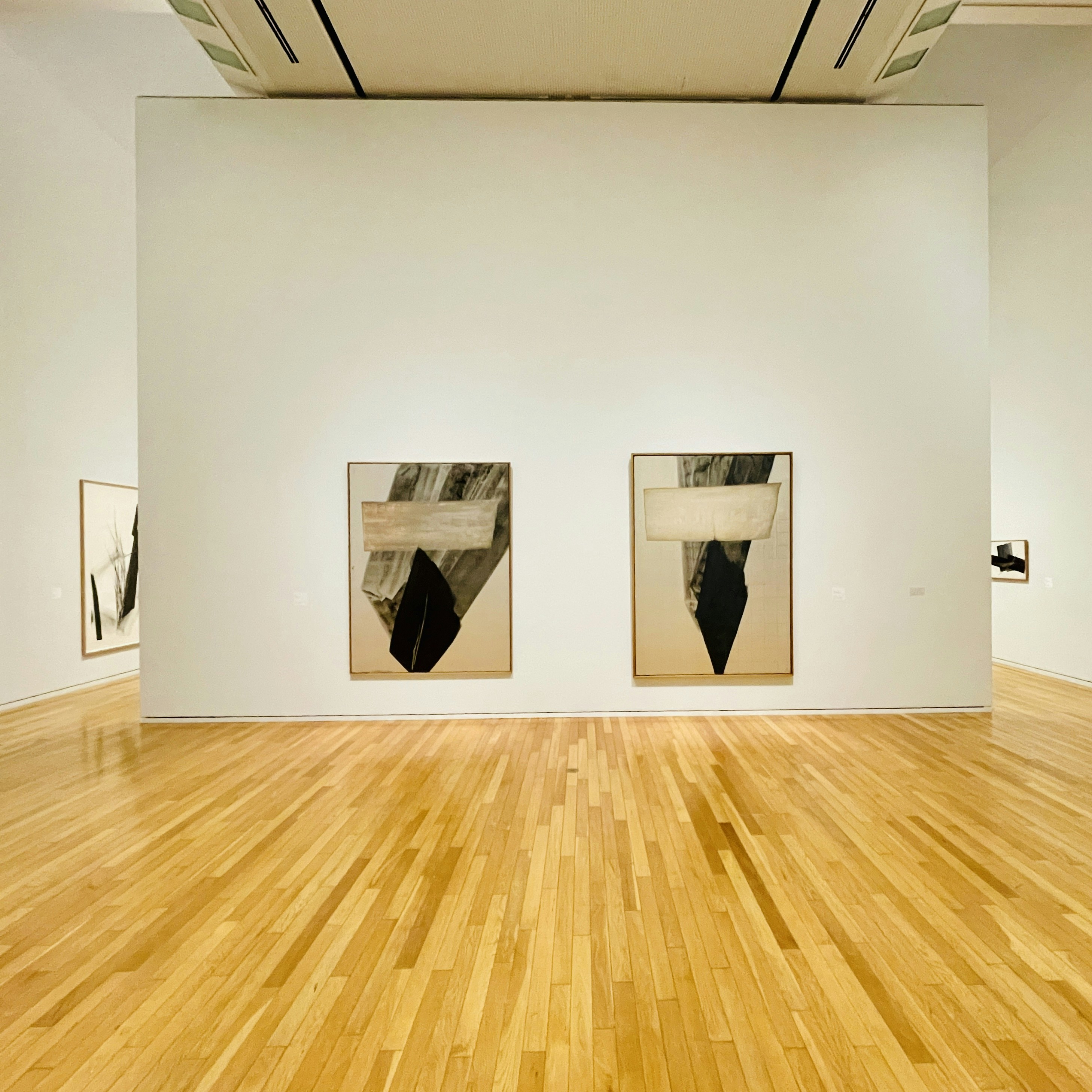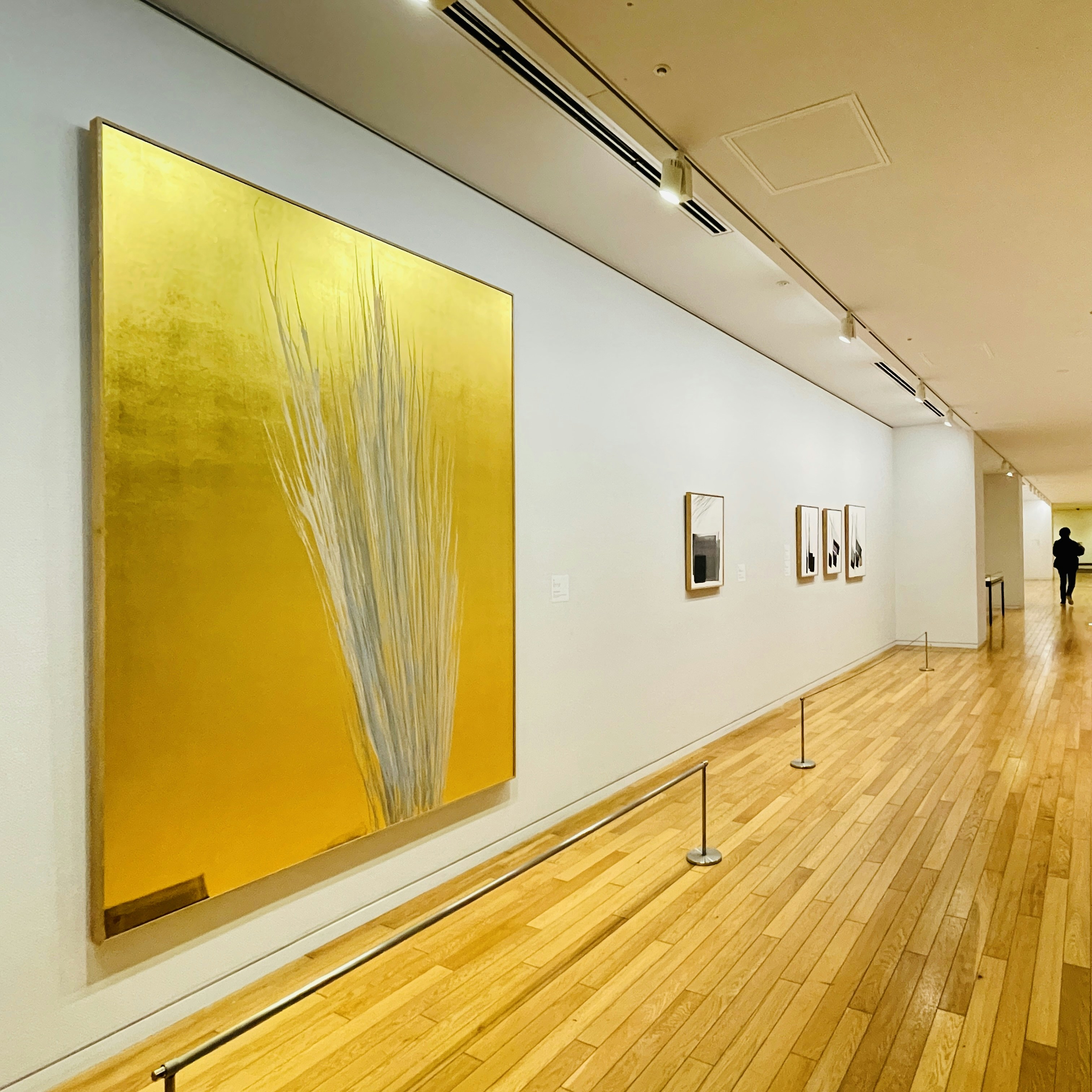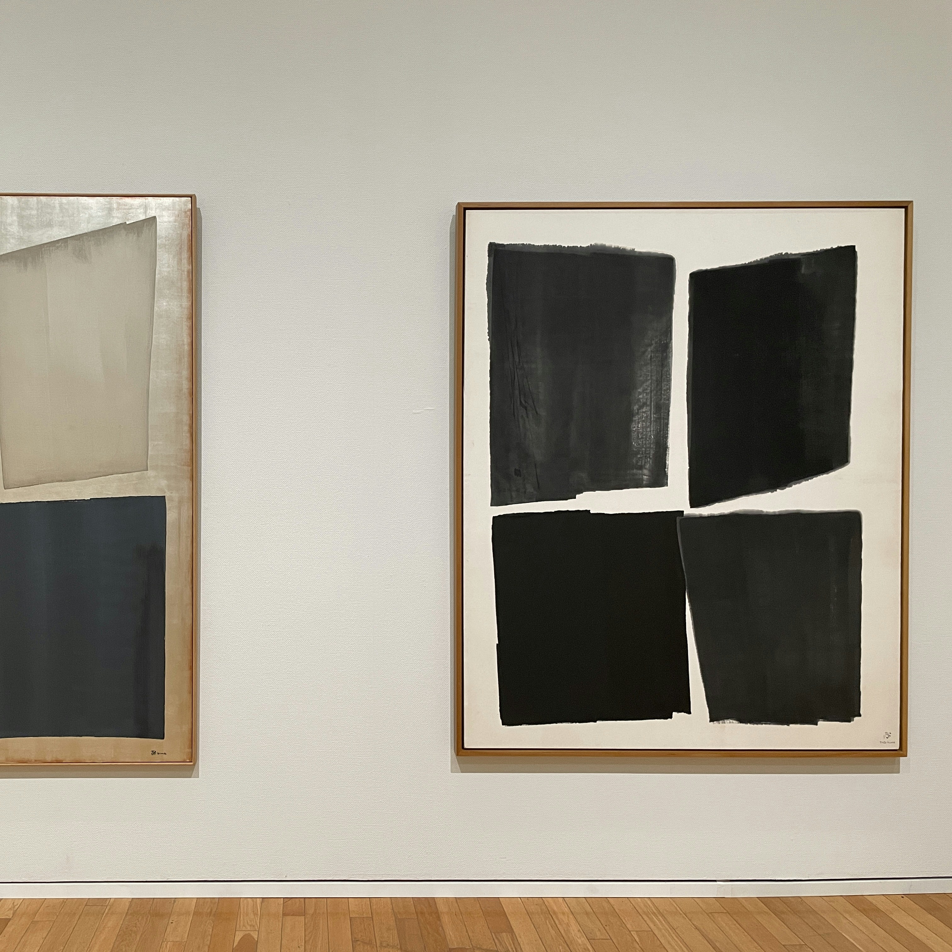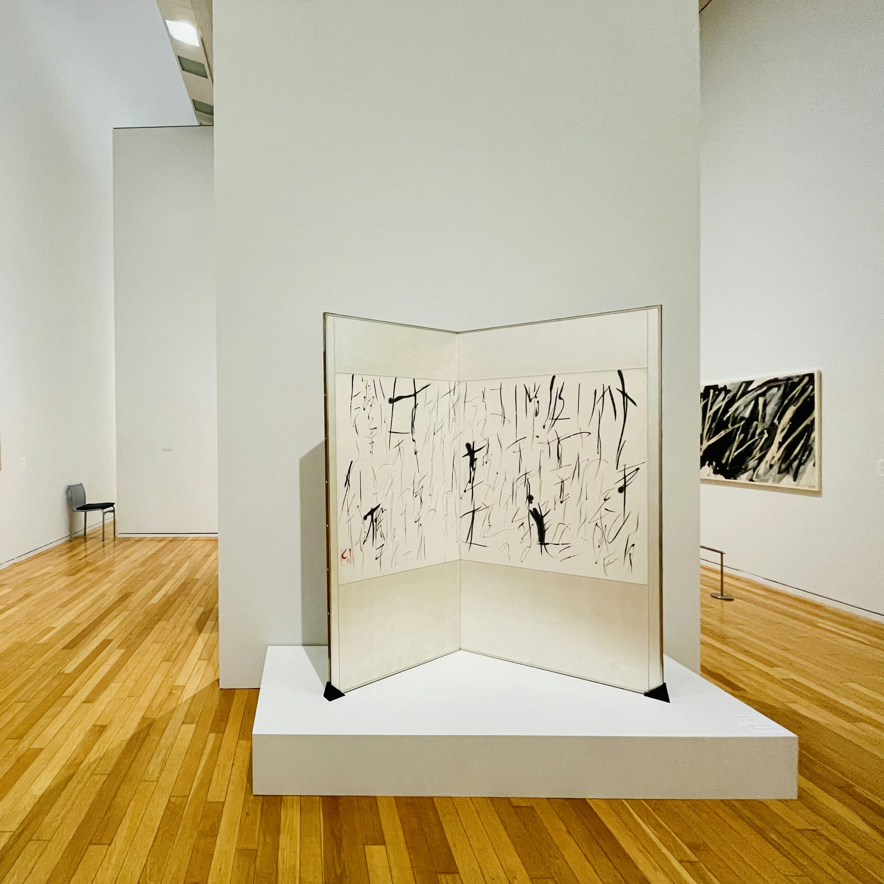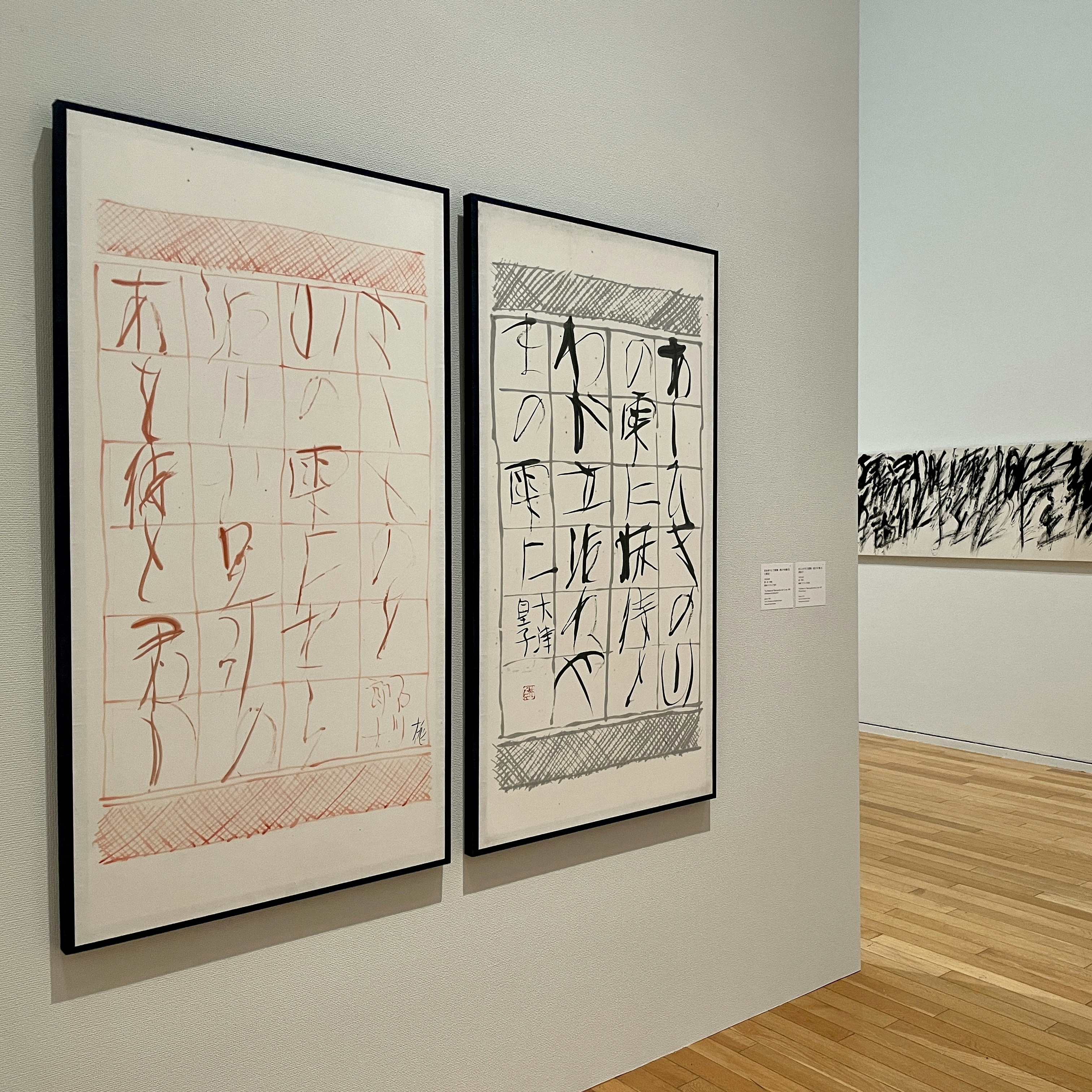帰国後は、書と絵画、文字と形象という二分法にとらわれない、墨による独自の抽象表現、空間表現を確立。ときに建築的なスケールにまで及ぶ制作によって、他の追随を許さない位置を占めた。