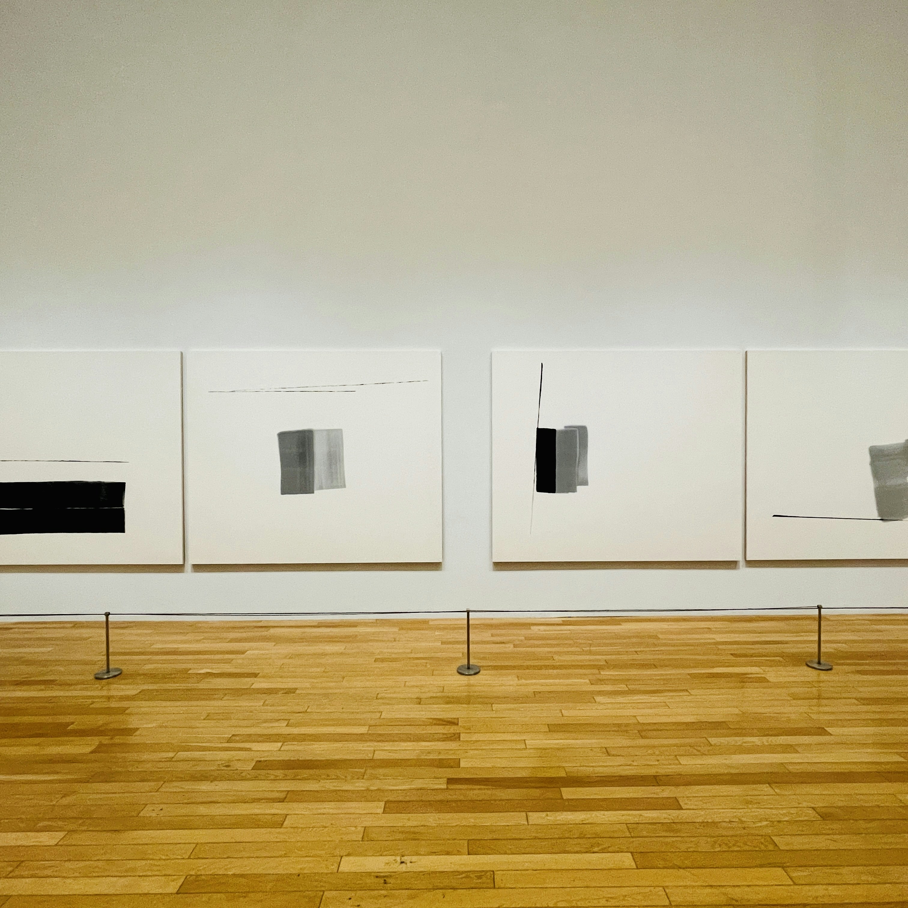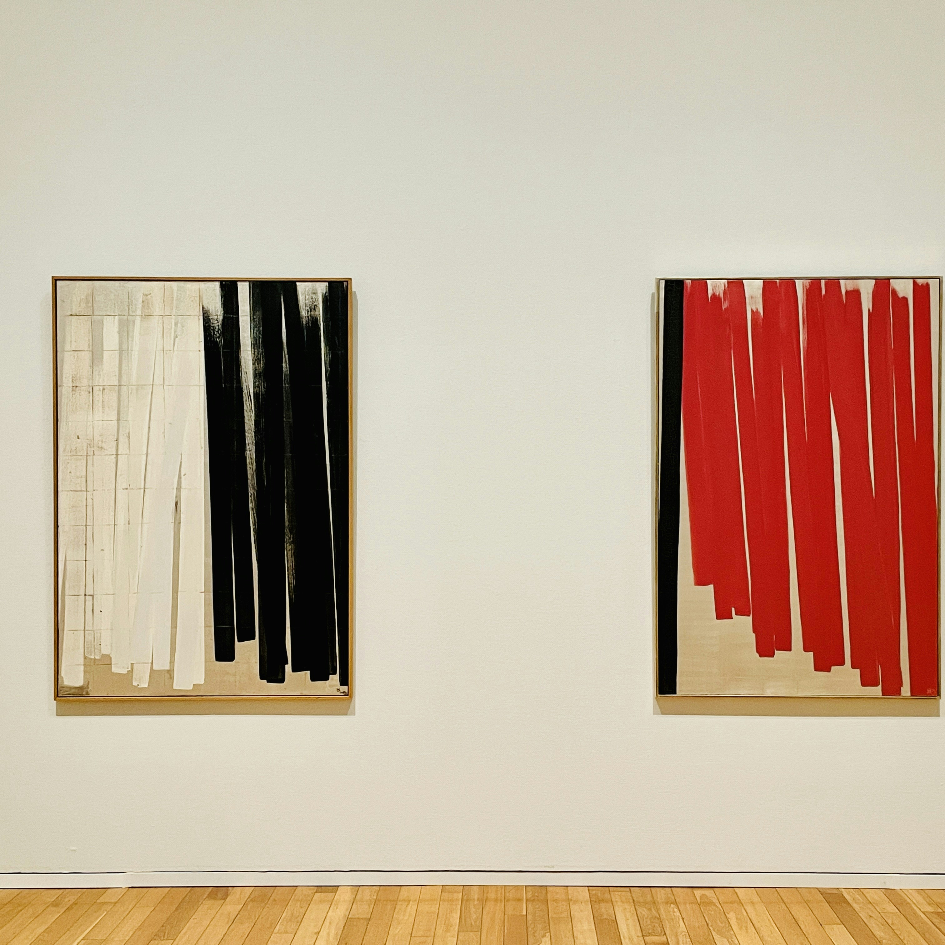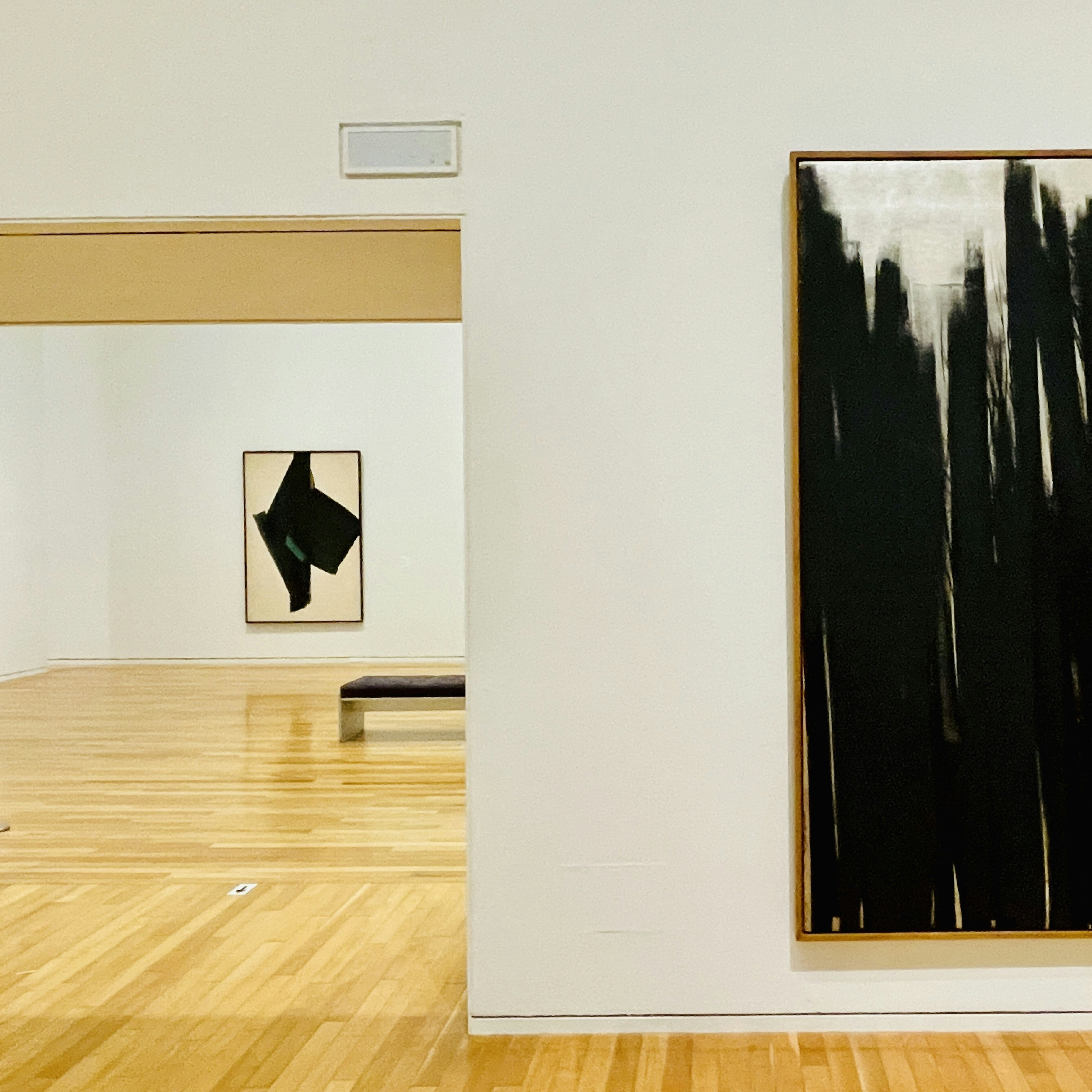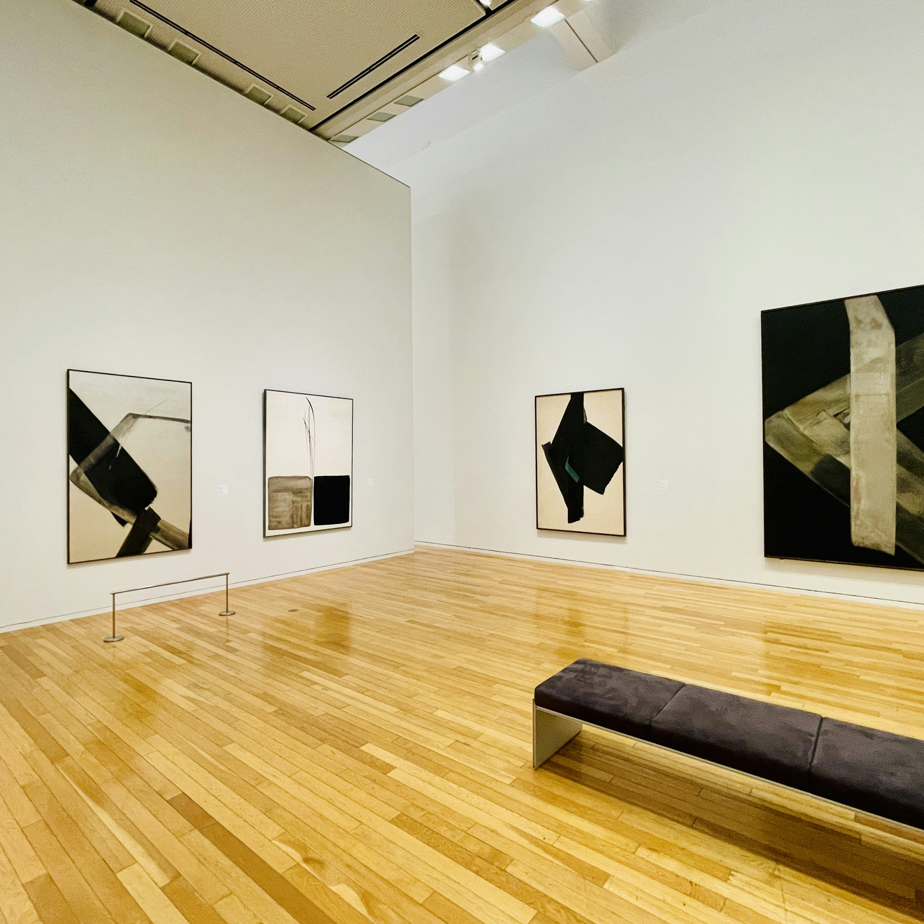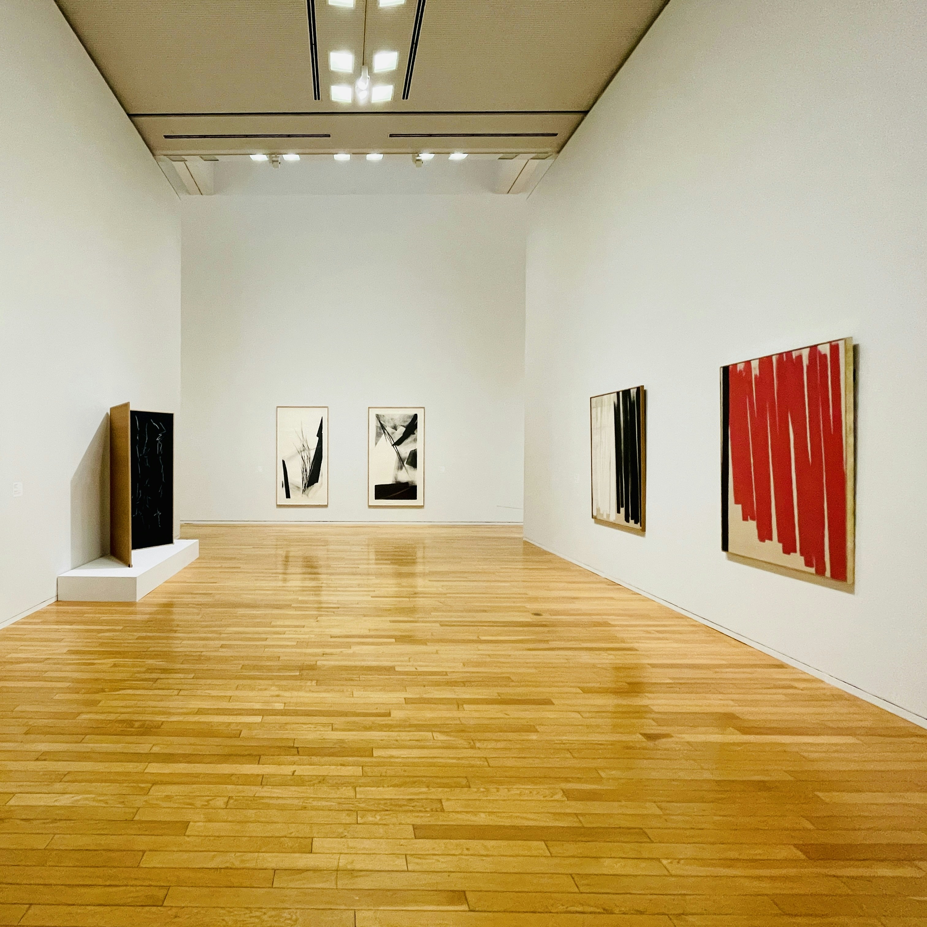 会場を眺めればその言葉に頷くことになるだろう。展示は時系列となっており、初期から晩年までの作品を紹介。判読可能な「文字」を書いていた初期から、太い線や面による構成でダイナミックな抽象表現に到達した50年代、ひとつのモチーフを徹底して探求した連作まで、作風の変遷をたどることができる。