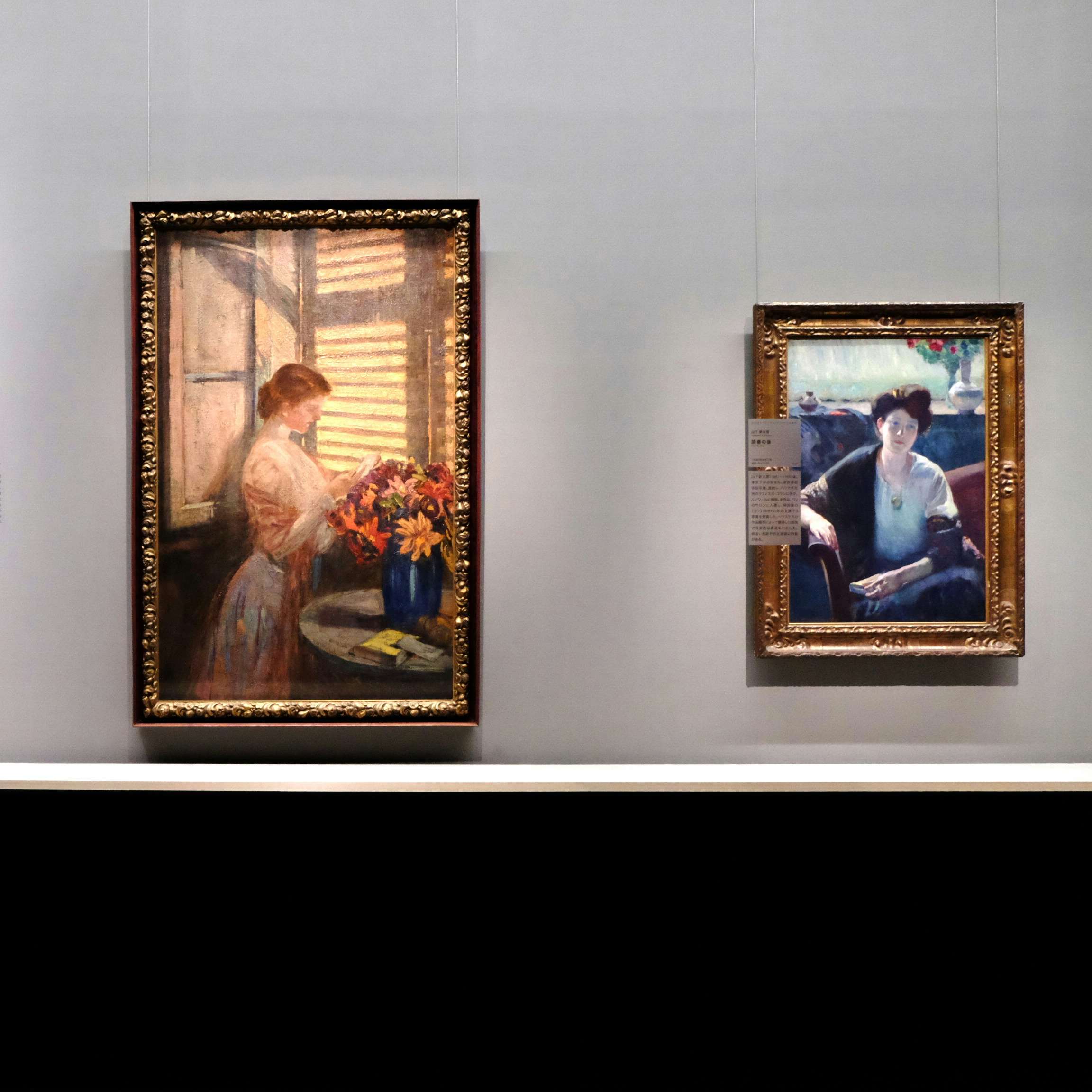 版画で著名な吉田博の妻である吉田ふじをの《神の森》(1910)も見逃すには惜しい作品だ。第4回文展で褒状となった水性で描かれたとは思えないほどの深みのある色使いが目を引く本作は、博とともにアメリカに渡り活躍したその実力をいまに伝える逸品といえる。