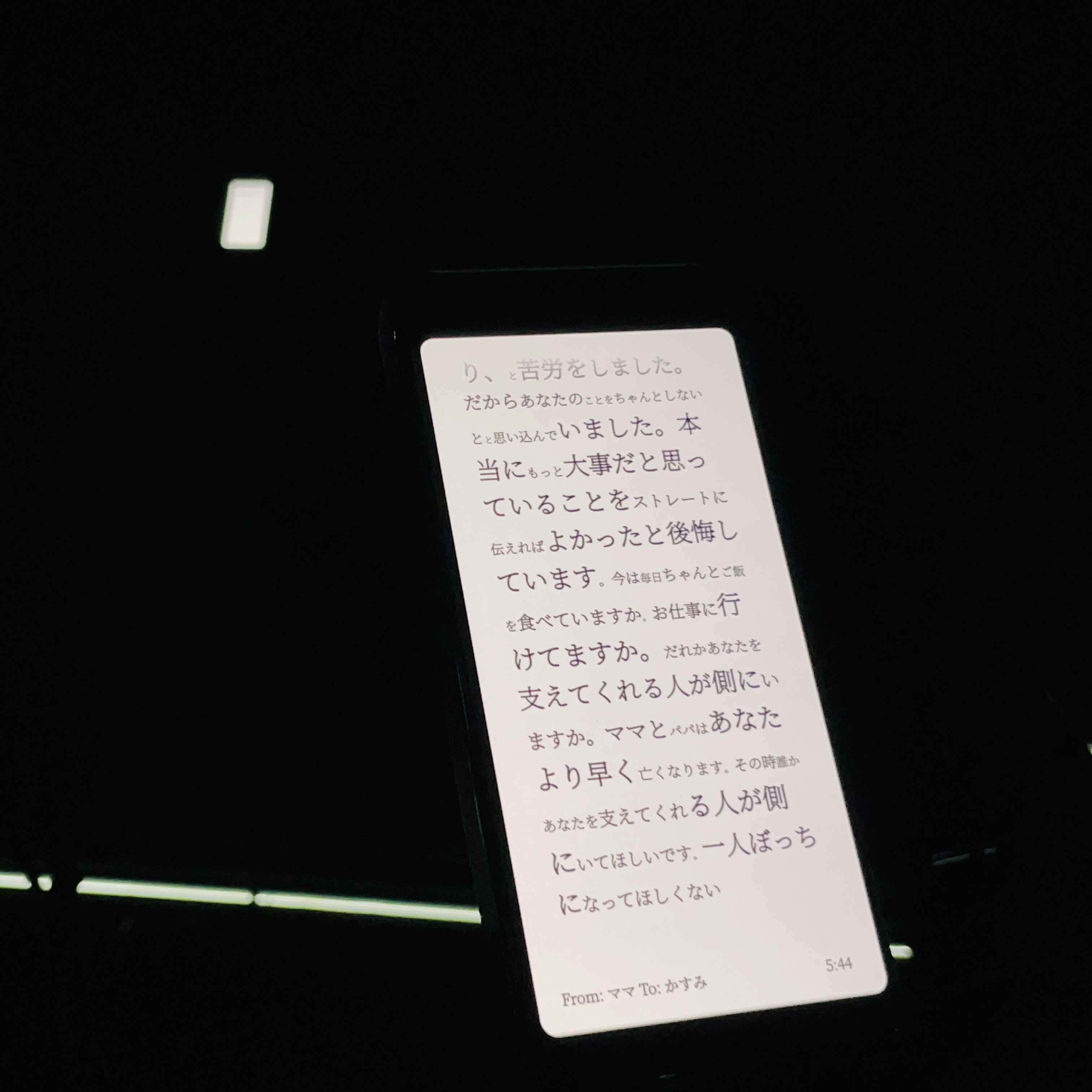 divisual.inc(ドミニク・チェン+遠藤拓己)は、「あいちトリエンナーレ2019」でも注目を集めたインスタレーション《TypeTrace / Last Words》(10分遺言)の最新バージョンを展示している。書いたり、消したり、ためらったりといった執筆プロセスを記録・再生するソフトウェア「TypeTrace」を用いたこの作品。自分がこの世を去ることを想定して書かれた様々な「最後の言葉」が会場に設置されたスマートフォン上で再生され、鑑賞者はその言葉の数々と出会うことになる(なお、会期中は遺言の募集も行われる)。