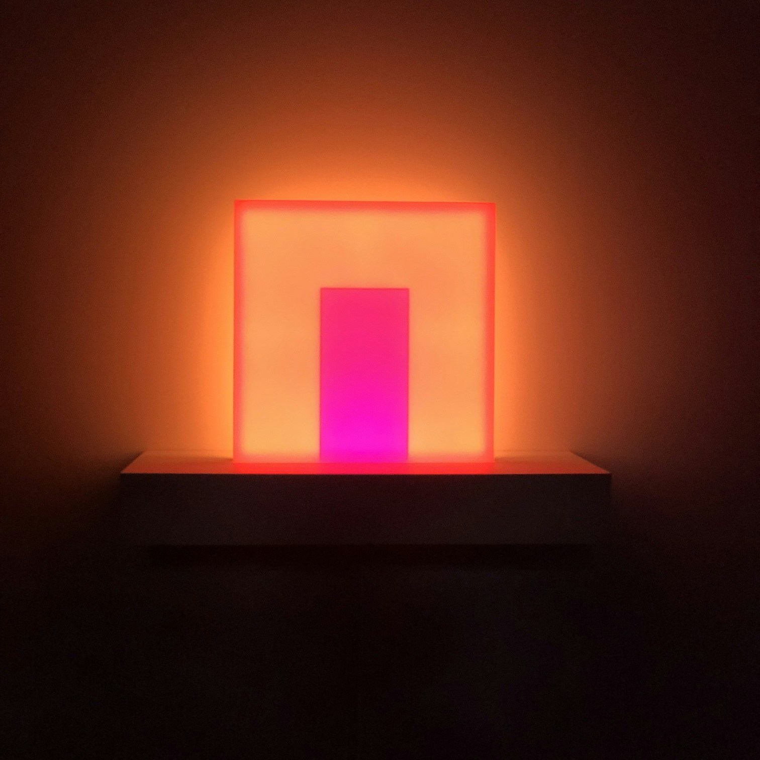 横長の部屋に並んでいる《Light Boxes》は、LED技術を駆使した光の作品。本作と真正面から向き合えば、作品の表面下にあるボックスから発光した鮮やかでありながらも穏やかな輝きに心を奪われるだろう。時間の経過によって色彩が変化し続けるため、同じ場所にあっても受け取る印象が変化する魅惑的な鑑賞体験となっていた。