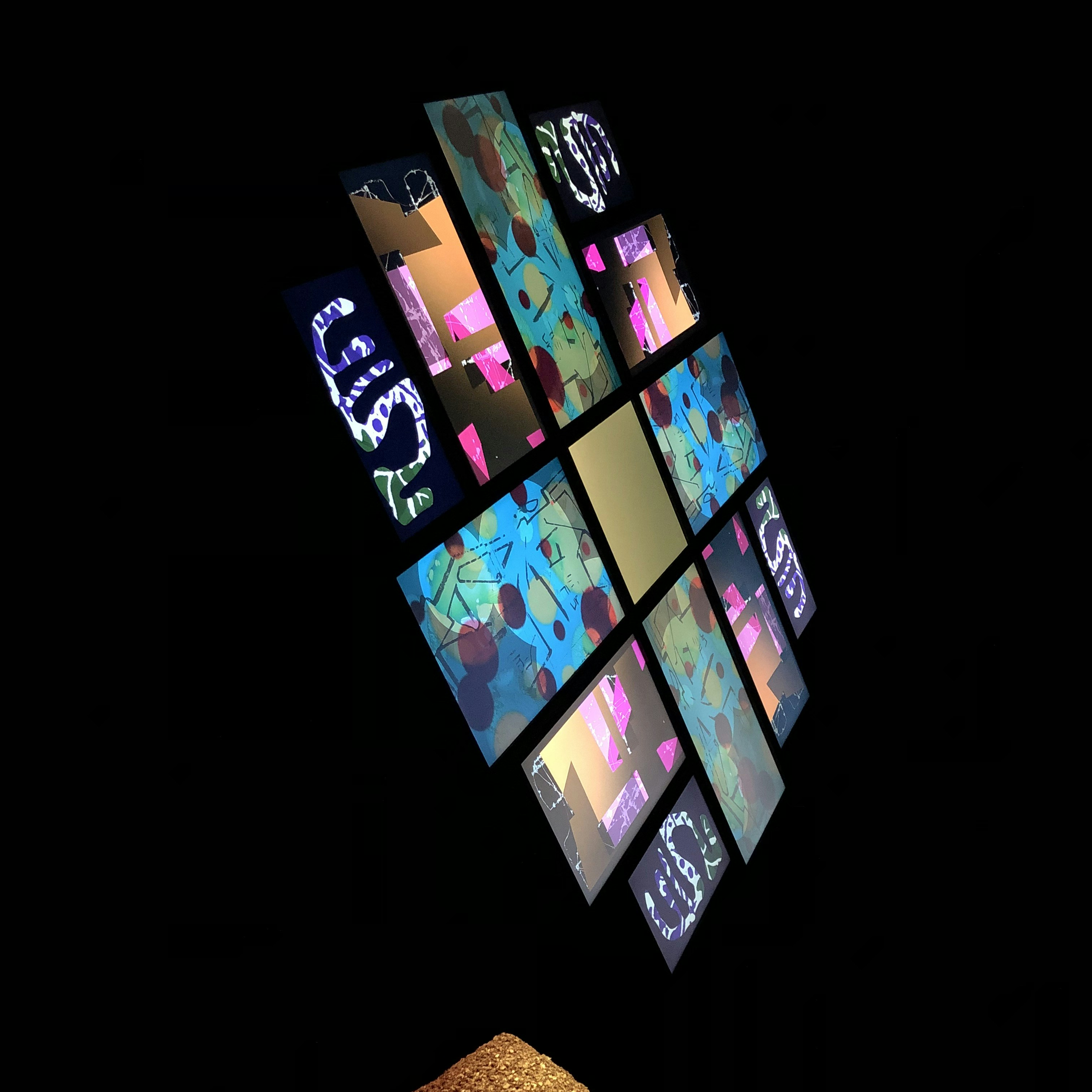 日本の京都における展示ゆえの独自性は、展示空間にも見ることができる。《77 Million Paintings》を鑑賞する際、室内を数本の細い柱が貫いているのがわかるだろう。これは16年前に2006年にラフォーレミュージアム原宿で世界初公開された際には存在しなかった。