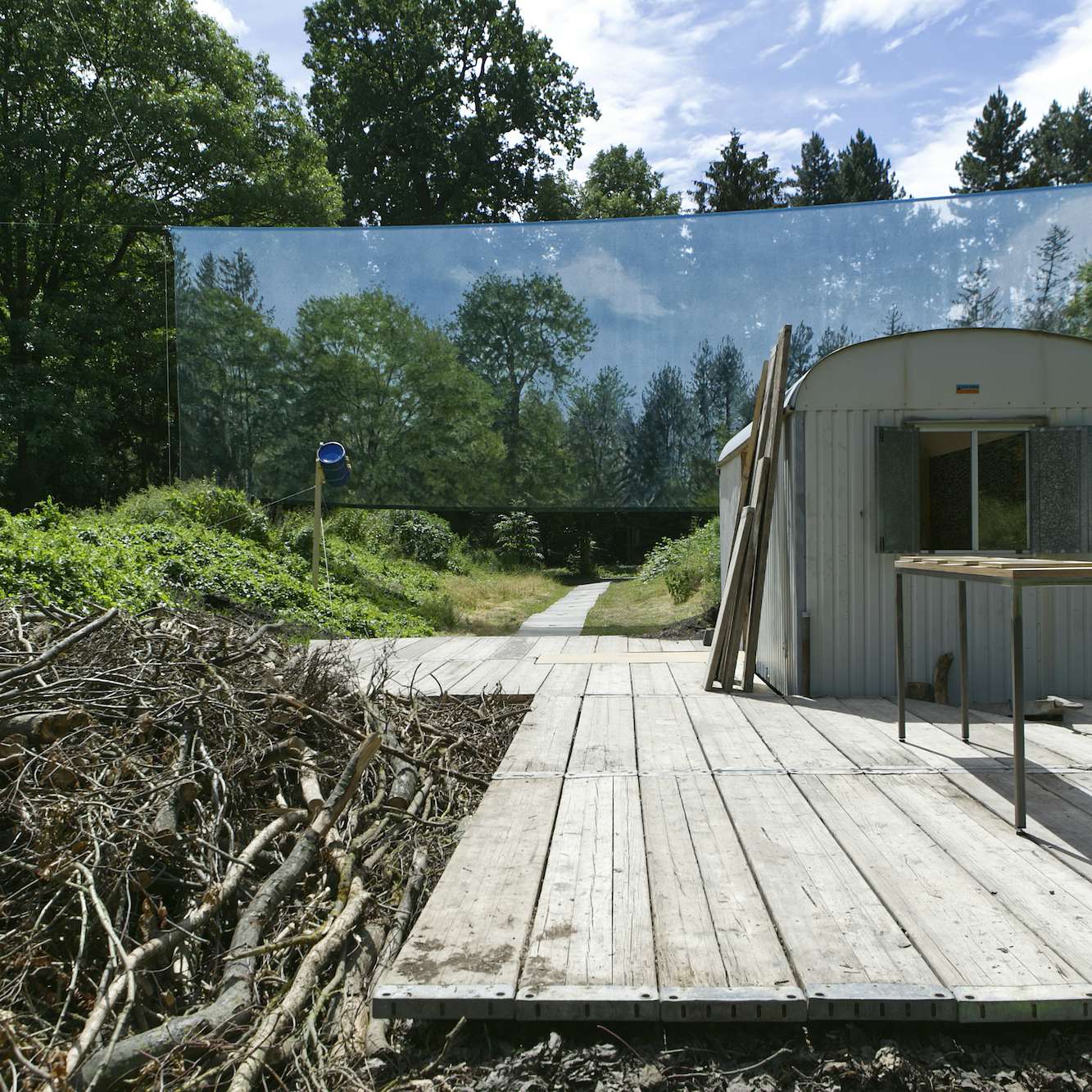 哲学者とアーティスト、作家の3名からなるLa Intermundial Holobienteは、人間ではないつくり手からの視点をも取り込もうとする。広大な公園にあるコンポスト(堆肥)の山。人が意図して作ったのではない風景の中で、朗読や執筆、ディスカッションなどを行っていく。「コンポストがとてもよかった」という評判を聞いて、ざっくりとした地図を頼りに鬱蒼と繁った緑の中を歩いていくと、目の前に真っ青な空が広がった。