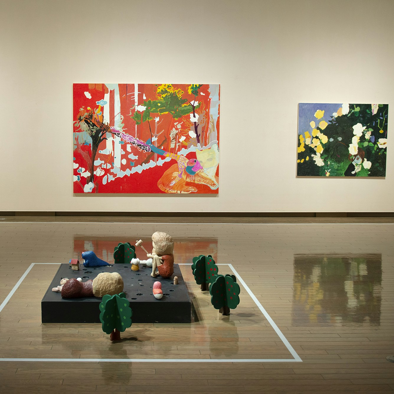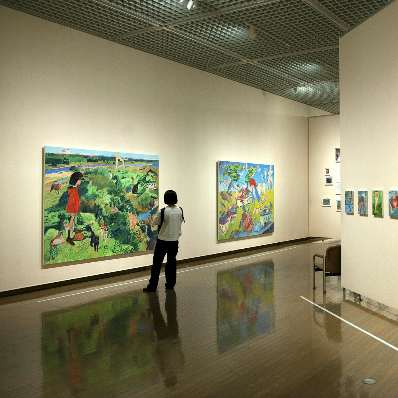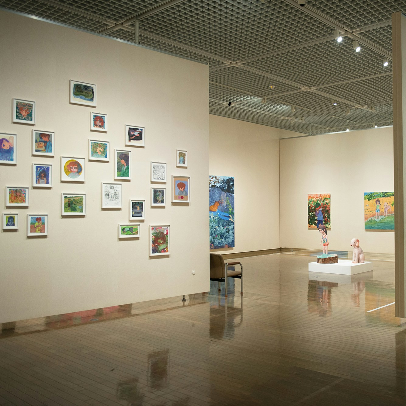 展示風景より、左から《まいご》(2001)、《もうすぐ衣替え》(2003)