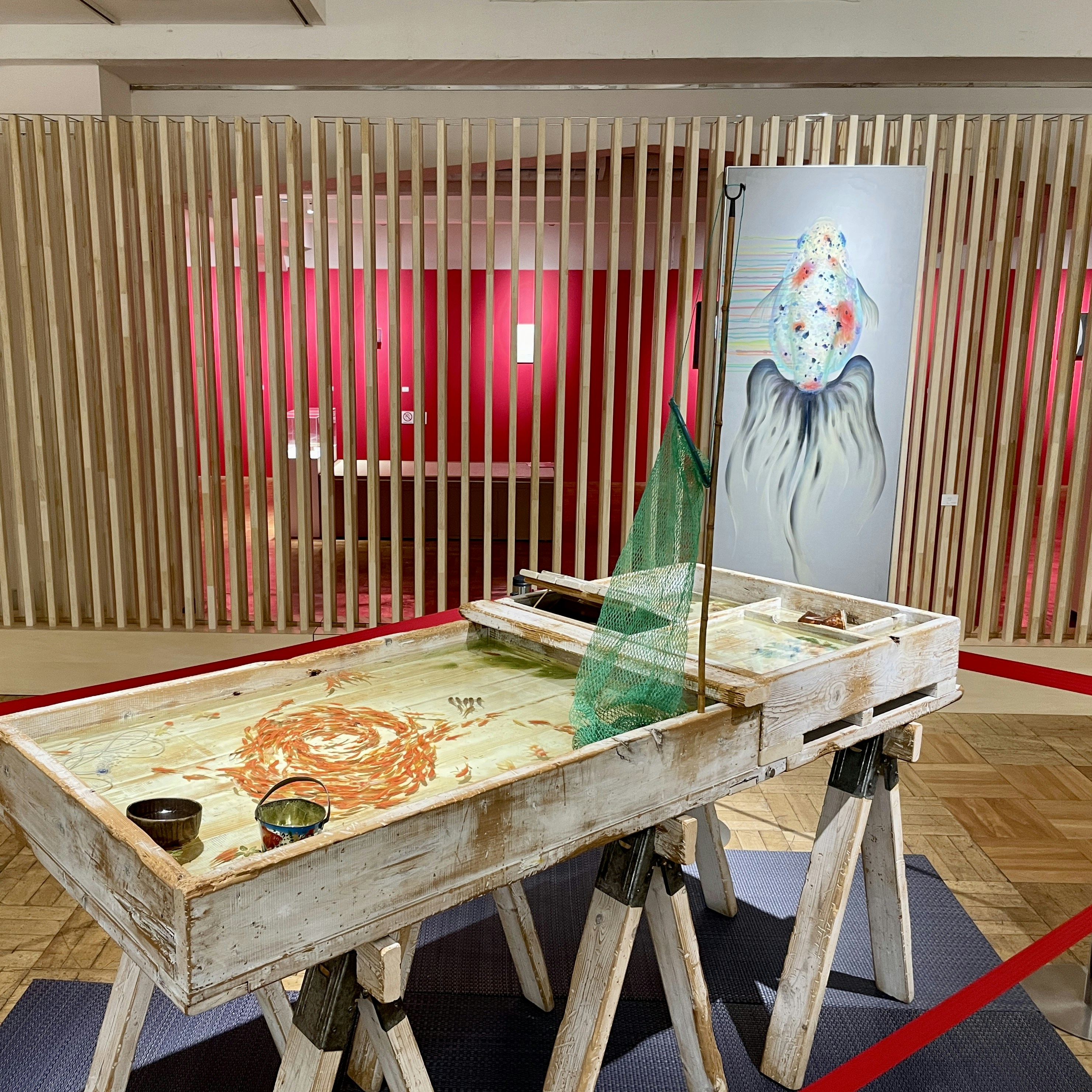 ライブペインティングも披露。金魚絵師・深堀隆介の個展が日本橋三越本店でスタート