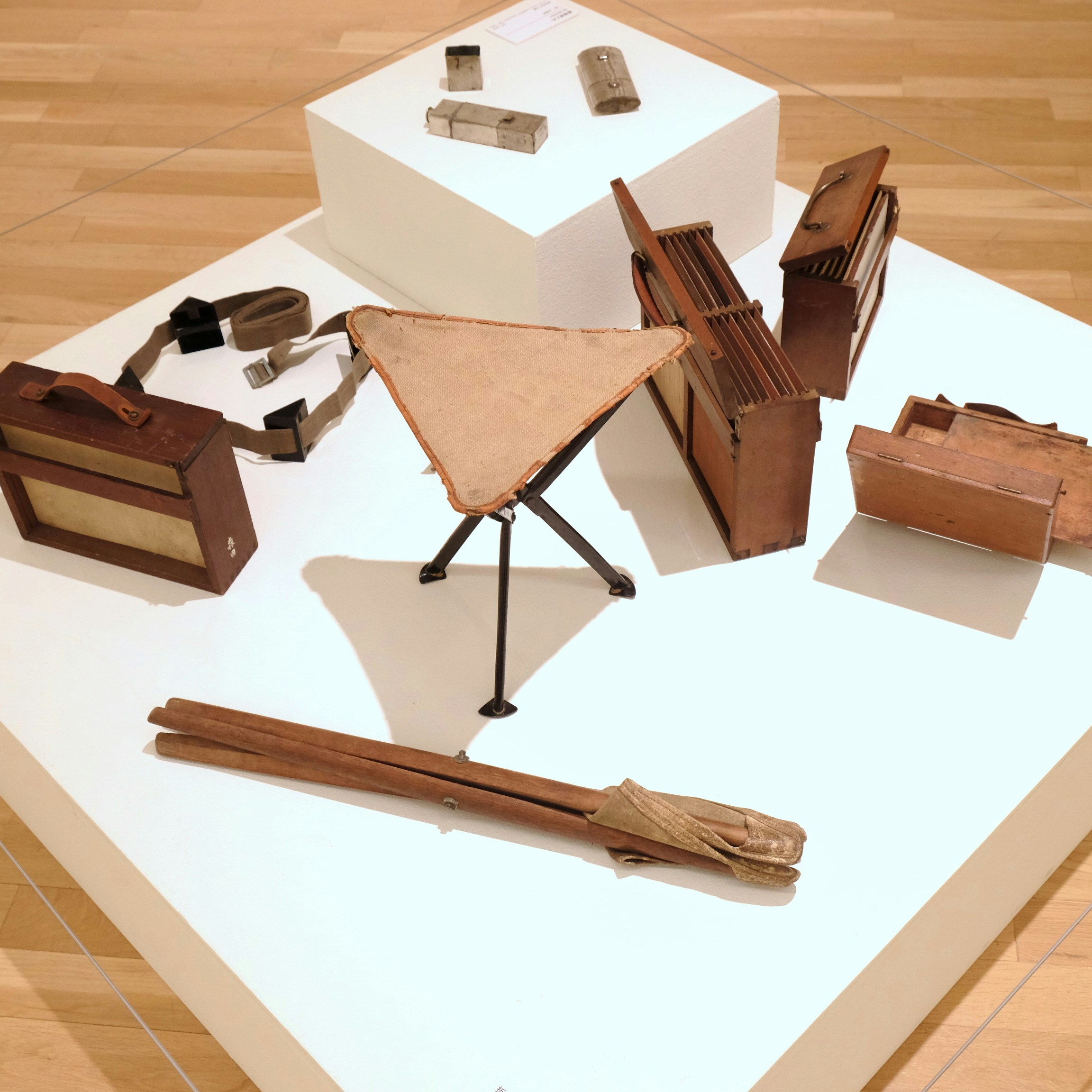 「画家の画材・道具」の展示もユニークだ。先にも述べたとおり、同館のコレクションの軸には「日本人画家が海外で学んでいた際に制作した作品」というものがあるが、その収集過程において画家たちが実際に使っていた道具や画材もコレクションに加わえてきたという。
