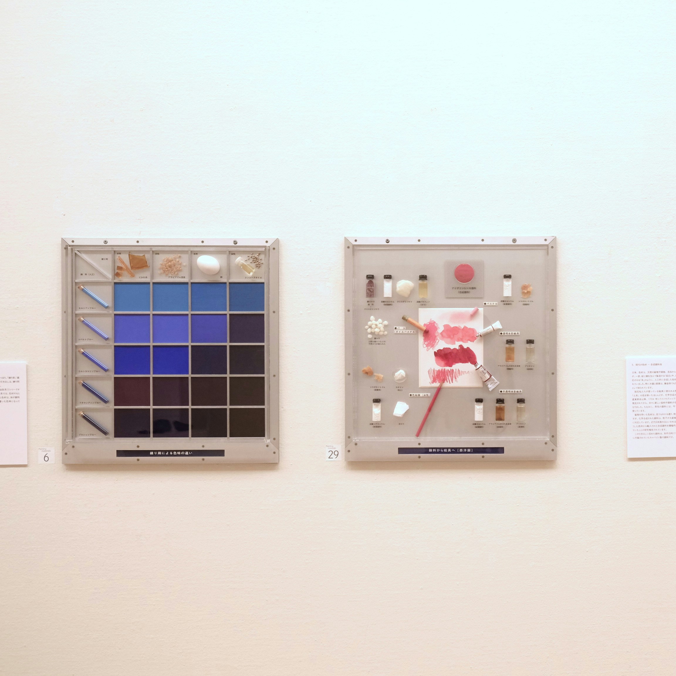 同館開館当初の学芸員が考案したという「引き出し博物館」は、それぞれ「画材」「素材─木」「素材─紙」「素材─金属」といったテーマが設けられ、そのなかには絵具の素材や様々な画材、支持体、木や紙の種類などが分類され、収められている。本展ではこうした引き出しを一挙に公開することで、作品を分解し分析的にとらえることのおもしろさを知ることができる。