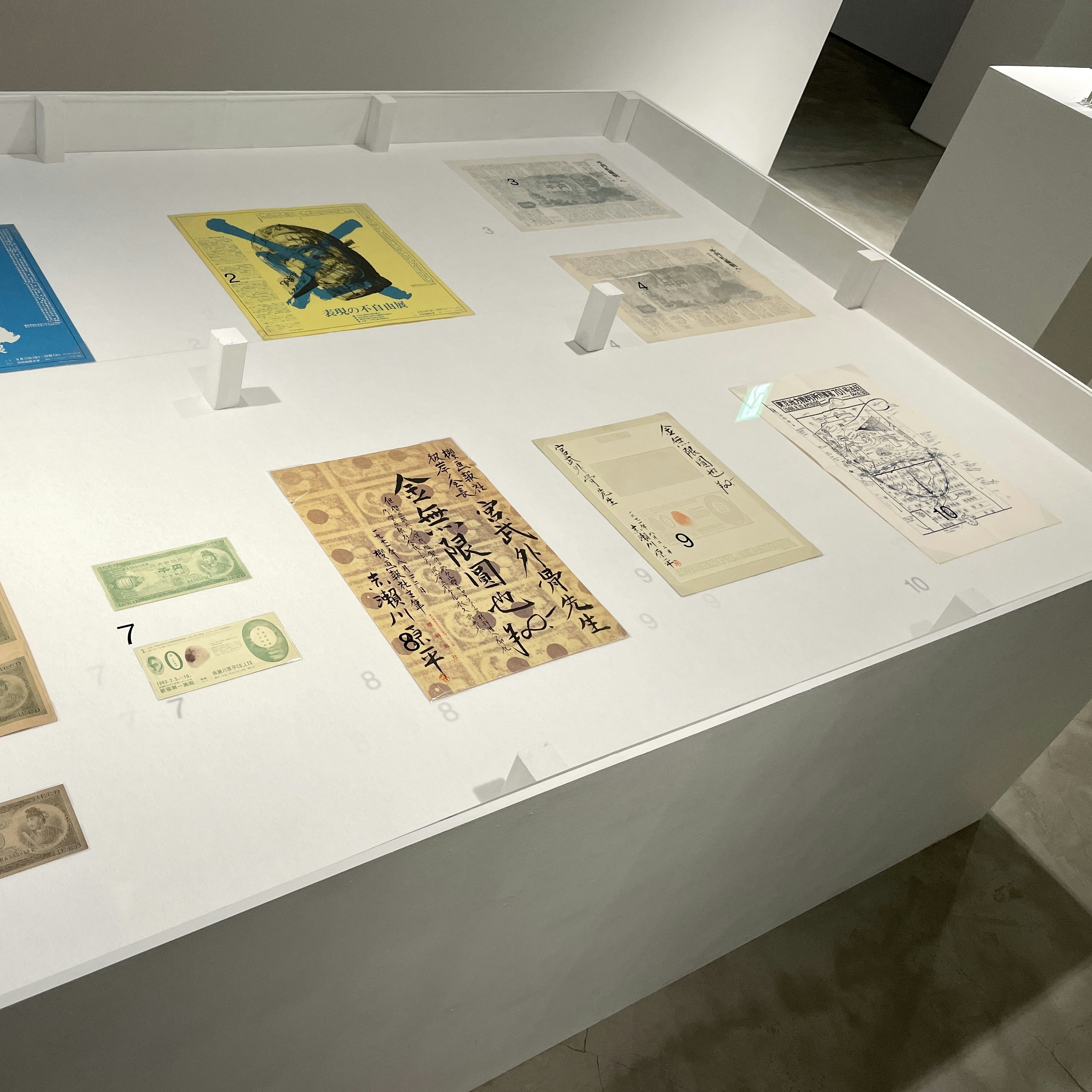 同じ展示室には、「千円札裁判」で知られる赤瀬川原平(1937〜2014)の「模型千円札」シリーズ(1963)なども並んでいる。都市機能がまだ回復されていなかった戦後の金権主義に対する抵抗感とユーモアを交えて表現したこれらの作品は、今日の資本主義中心社会を予感しただろうとも言える。