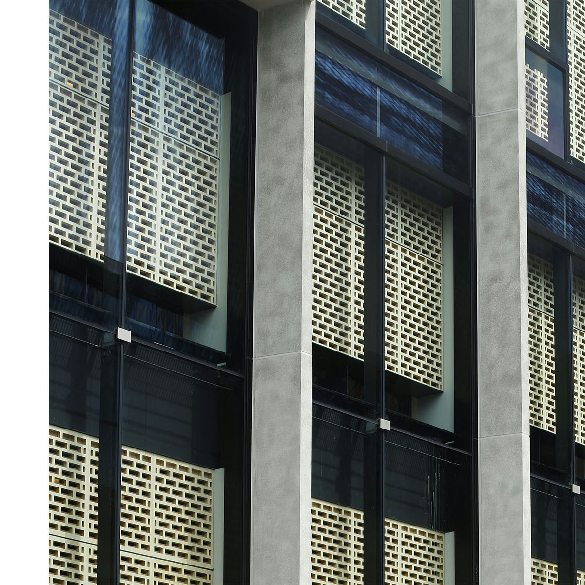 設計を担当したのは奥野設計の石井秀明。前川國男館の特徴である日射を制御しながら自然光を室内に取り入れるためのホローブリック(有孔煉瓦ブロック)や、プレキャストコンクリートルーバー、隣接する県立音楽堂(前川國男設計)にも共通する、大きなガラスによる透明感と開放感というエッセンスを抽出。本と光に包まれながら本と向き合うことのできる空間を設計した。