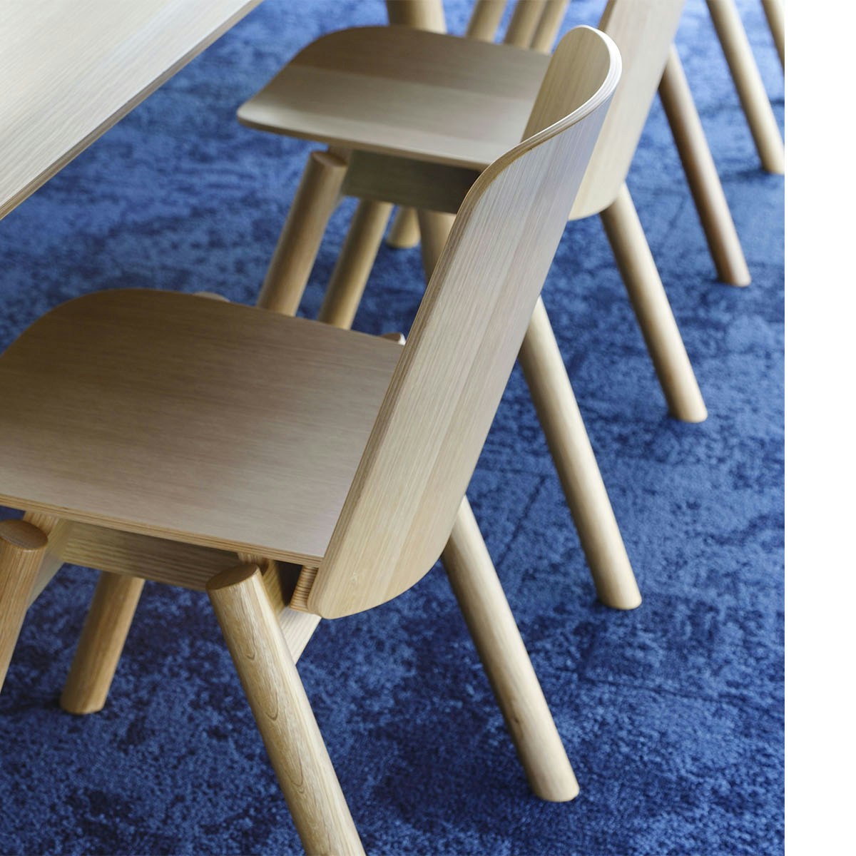 中坊が担当した閲覧ビッグテーブル&チェア・スツールは軽やかなデザインにも関わらず、本を読む人の体をしっかりと支えてくれる構造となっている。とくに、本を読む際に手首が当たりやすいテーブルの端が曲面に加工されているのがポイントだ。