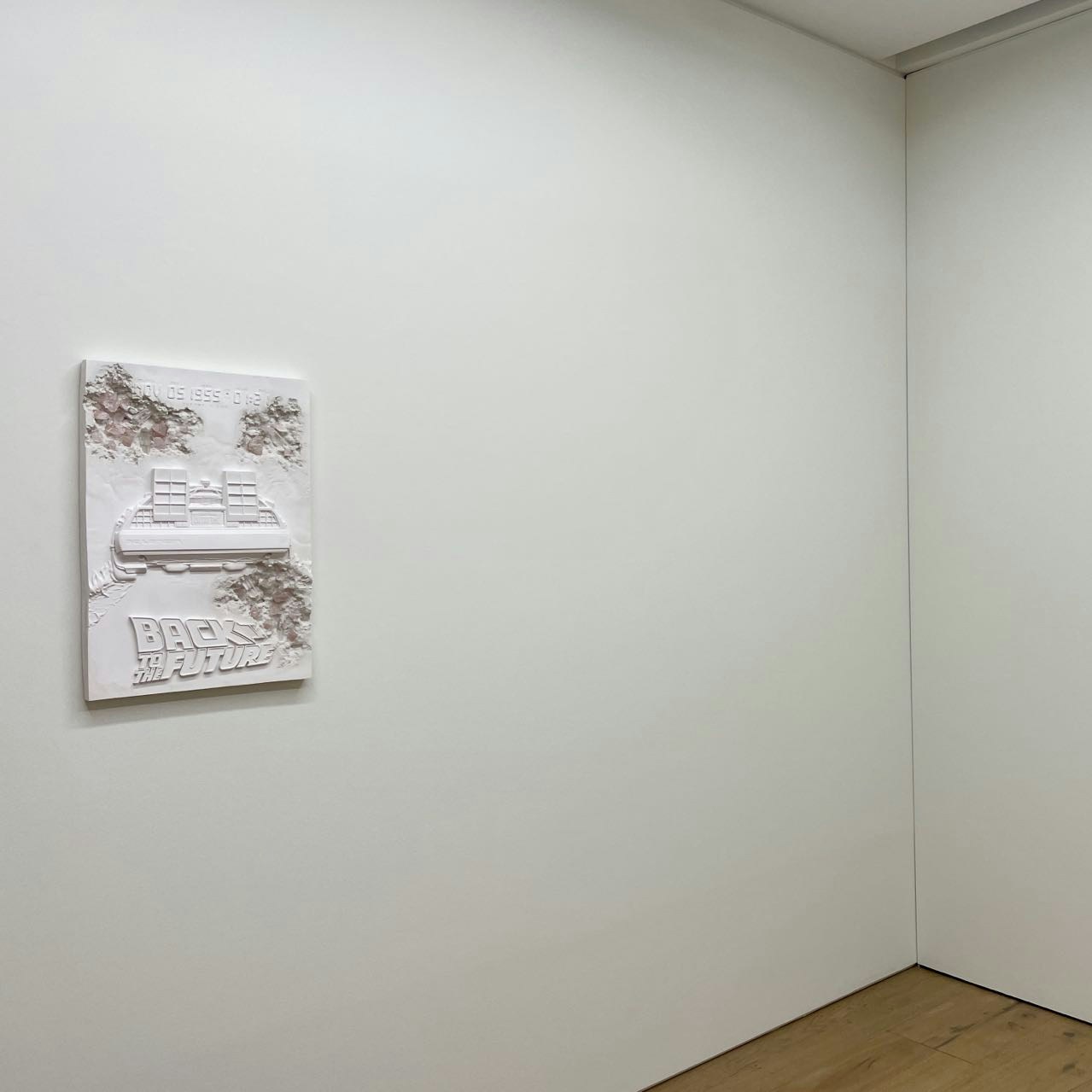 隣の展示室では、『E.T. 』『バック・トゥ・ザ・フューチャー』『2001年宇宙の旅』の映画ポスターを、アーシャムの代表的な手法「Fictional Archaeology(フィクションとしての考古学)」で表現した3つの立体作品が展示されている。現代的なイメージと考古学的な水晶をミックスさせることで、これから続く膨大な時間の流れを感じさせる。