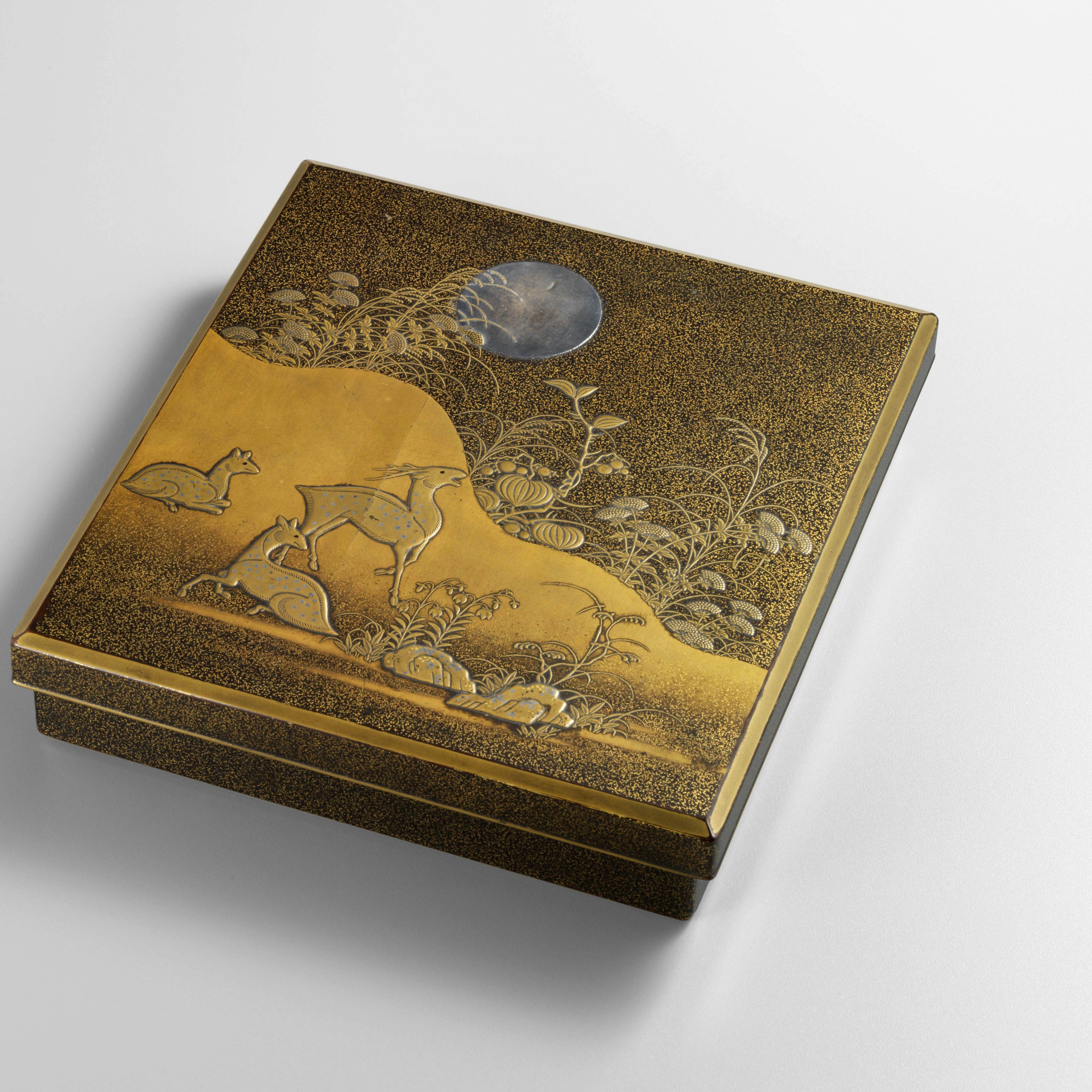 漆で文様を描き、それが硬化する前に金銀などの金属粉を蒔きつけて装飾をほどこす「蒔絵(まきえ)」は、正倉院宝物のなかにその源流と考えられる作例があるものの、その後日本で独自に発展を遂げる。いまや「maki-e」として、世界にも日本の漆芸技術と知られる技法である。