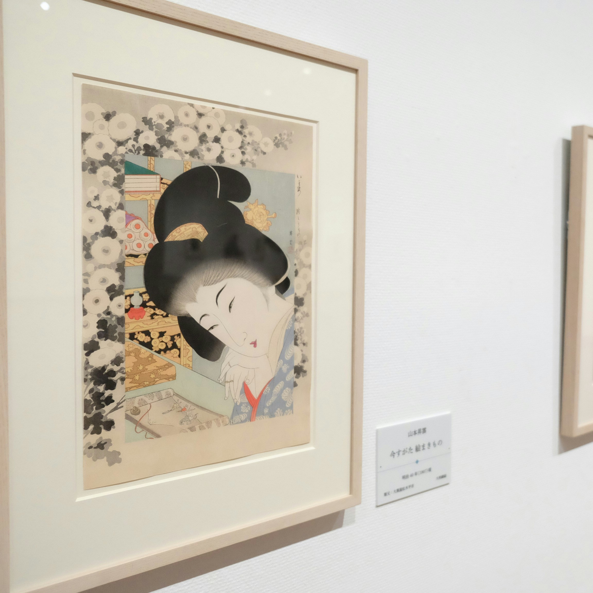 展示風景より、山本昇雲《今すがた 絵まきもの》(1907)
