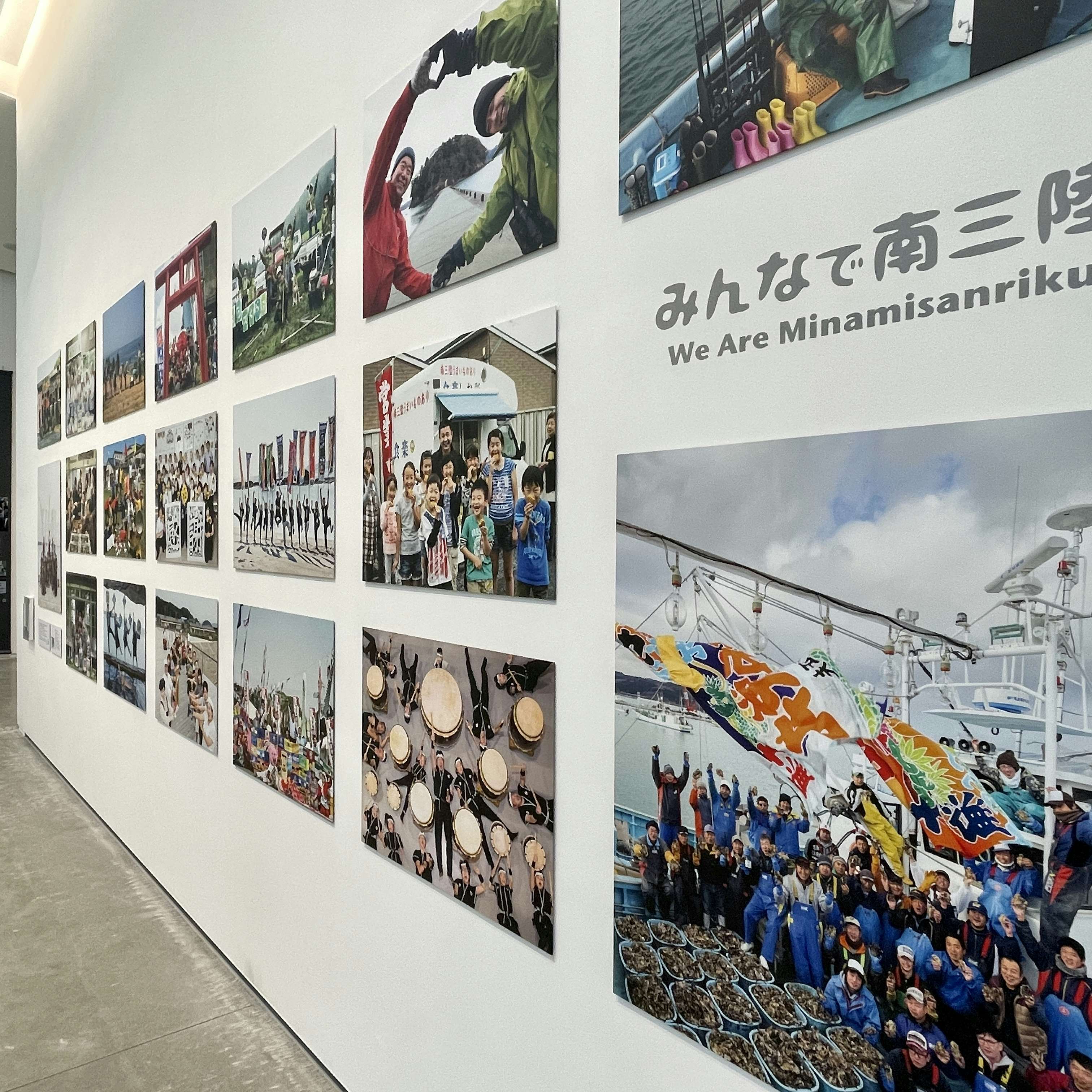 館内にある震災後の町民たちが支え合いながら生きる姿や感謝を伝える交流スペース「みんなの広場」では、写真家・浅田政志が2013年秋から21年夏まで町民とともにつくり続けた作品「みんなで南三陸」全47点から、19点が常時展示される。そこに写された生き生きとした町民の姿は、ひときわ明るく輝いている。