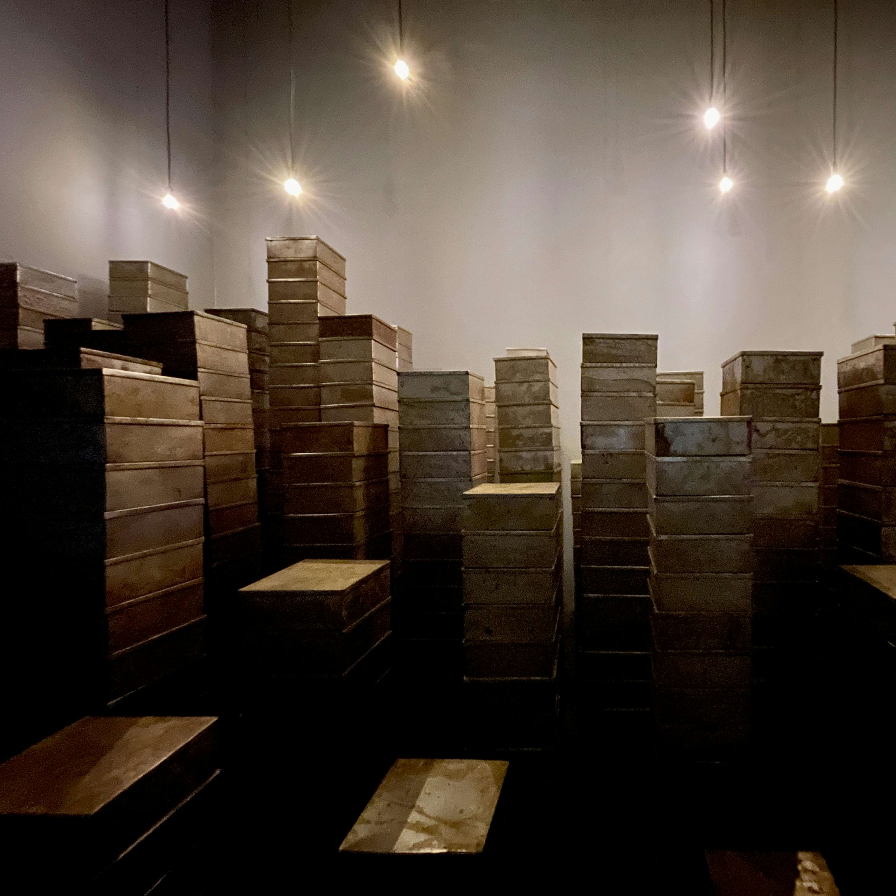 暗い展示室に設置された作品は、ボルタンスキーの代表作である錆びたビスケット缶を積み上げたインスタレーションだ。使用されたビスケット缶の数は1050個。町内の板金工場が作家に確認をとりながら手作業で制作し、南三陸町の潮風のなかで風化し、錆びていった。ボルタンスキーは作品完成を見届けることなくこの世を去ったが、同氏の作品制作を全世界で手がけてきたアトリエ エヴァ・アルバランとともに制作を進めることで完成へと至った。