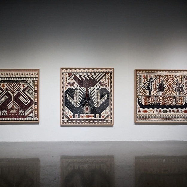 海をキーワードに呼応する作品はほかにも見られた。インドネシア系移民の子としてオランダで生まれたジェニファー・ティー(Jennifer Tee)は、「タンパン・チューリップ」というシリーズ作品を展示していた。「タンパン」とは、インドネシアのスマトラ島南部で生産されている伝統的なテキスタイルのこと。誕生、成人、結婚、死など、人生における重要な催事に際して用いられているという。