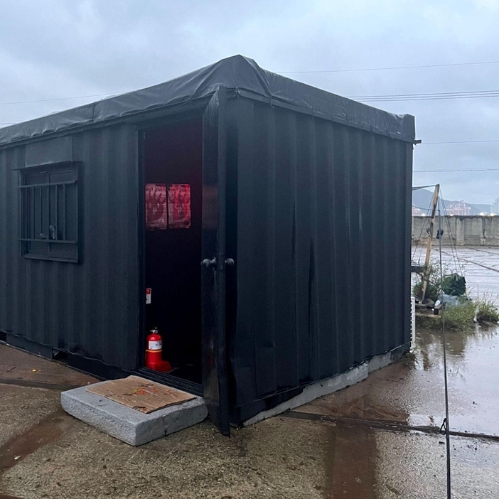 造船所の目の前に広がる空き地には、Chim↑Pom from Smappa!Groupによるコンテナが設置されている。