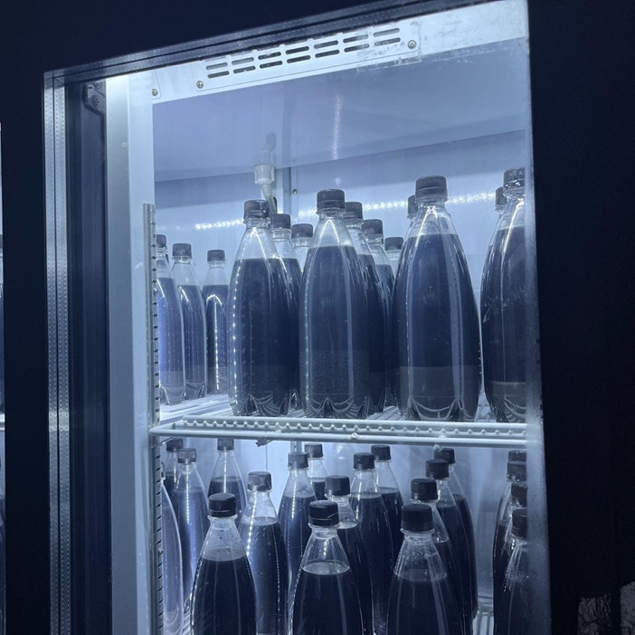 コンテナの内部では「DOBUROKGEOLLI(ドブロッコリ)」と書かれた電飾が煌々と光っている。本作では、韓国のマッコリと日本の獨酒(どぶろく)の共通点をもとに、両者を融合させた独自の「ドブロッコリ」が提示されている。