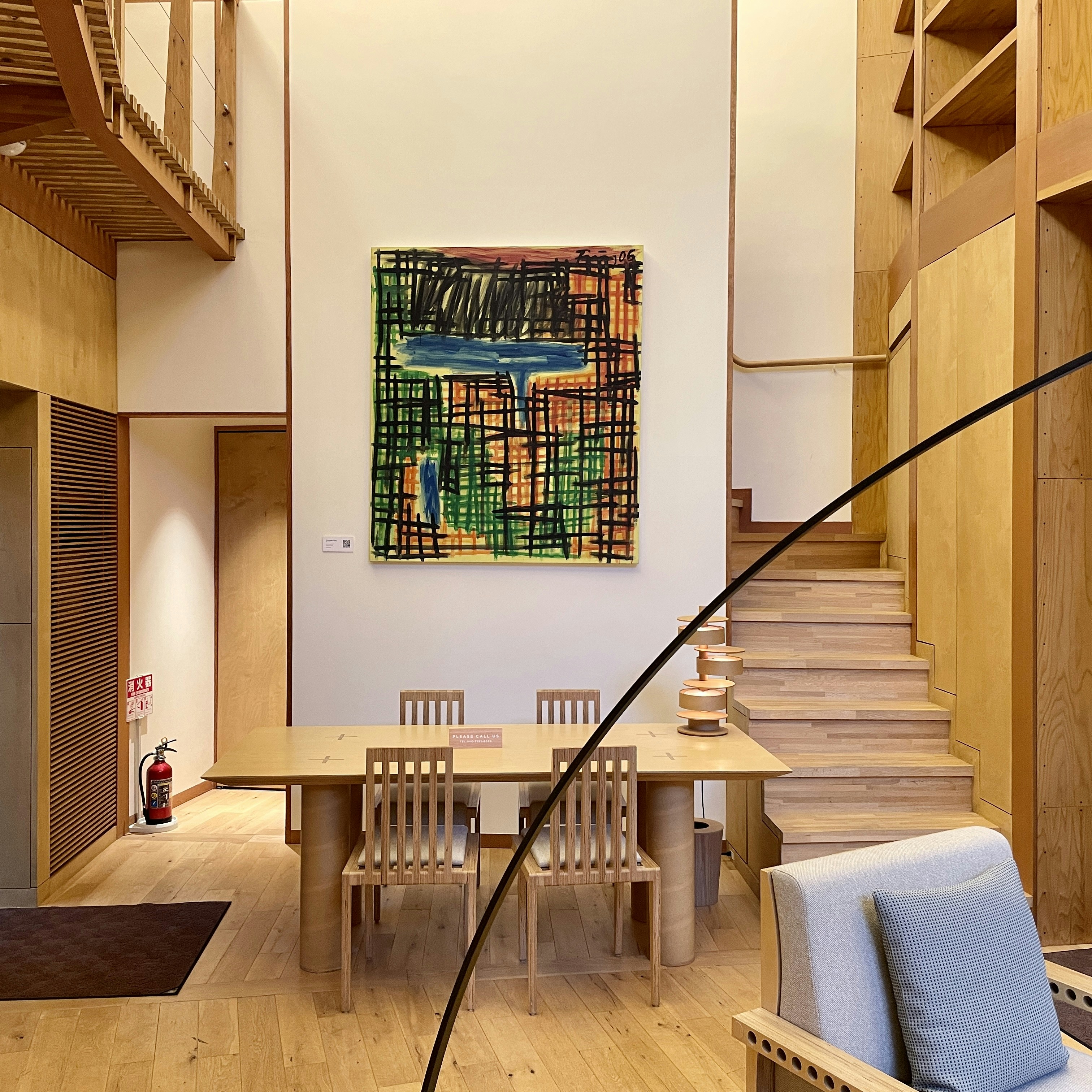 ししいわハウス軽井沢では棟ごとに展示のテーマがある。SSH No.1の中心となるのは「具体美術協会」(具体)の作品。創設者のホアンは、前衛作家集団としてそれまでの価値観を塗り替えようとした具体に、これまでにないホテルを目指す自らの姿勢を重ねたのだという。