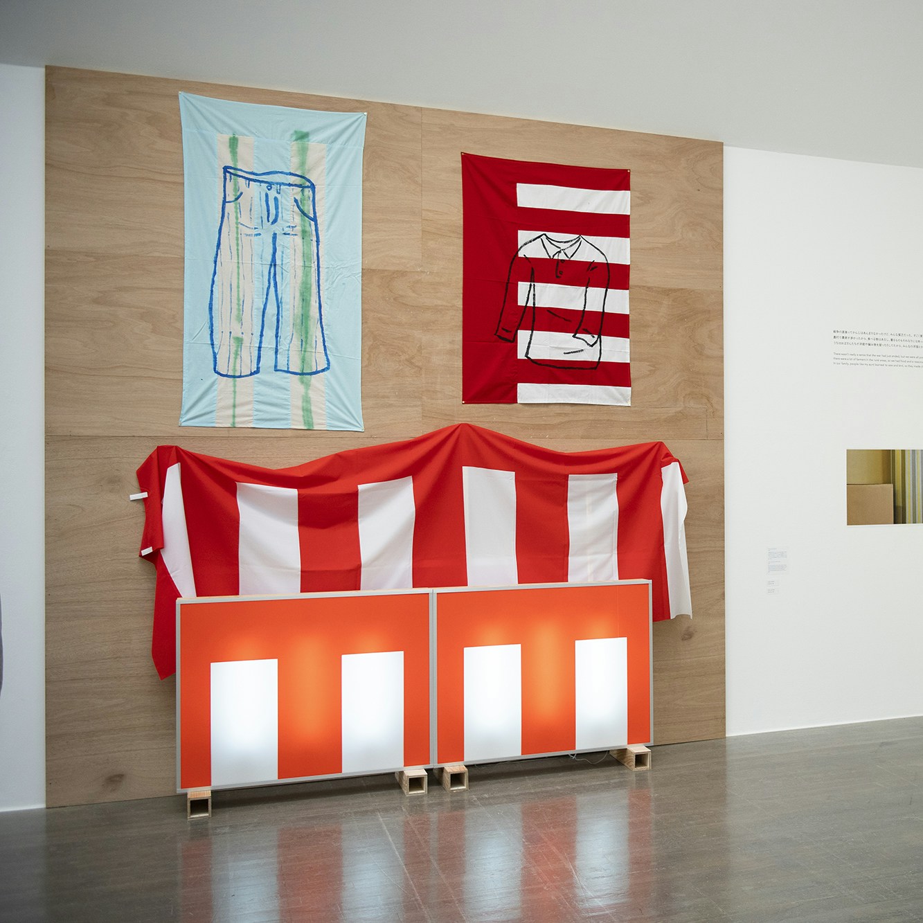中﨑が母親のインタビューと組み合わせて展示したのが、2020年の「いちはらアート×ミックス」に出展するために手がけた作品(開催が1年延期され、2021年に発表)。市原市の古くて大きな衣料品店を会場にした展示用に、建物内の壁紙や什器、カーテン生地などの模様をモチーフにライトボックス作品を制作。母親が戦後について語った「うちはおばさんたちが洋裁や編み物を習ったりしてたから、みんなの洋服とかつくってくれてた」というエピソードと紐づけられている。