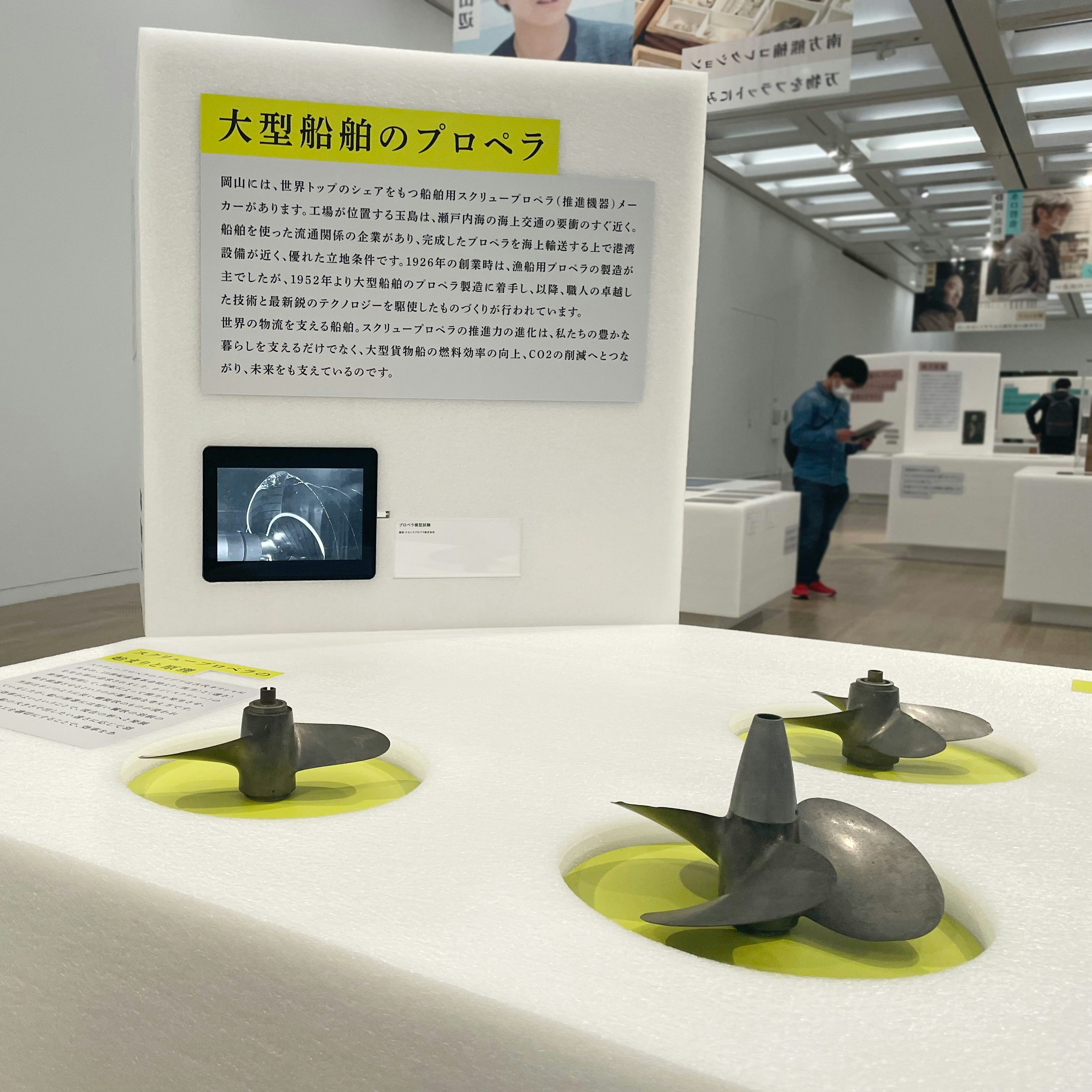日本デザインセンターの代表でグラフィックデザイナーの原研哉が訪れたのは、故郷である岡山県。世界の船舶シェア30パーセントを占めるという倉敷のプロペラメーカーをリサーチし、その動力を追求した機能美に出会った。さらにリサーチを進めると、100分の1ミリの精度が必要となる仕上げの工程を、職人がひとつひとつ手作業で行っていることも明らかになった。これらのプロペラのデザインについて原は「合理性や自然の摂理にぴたりと寄り添う、無駄なくゆるぎないかたち」であると本展で紹介している。