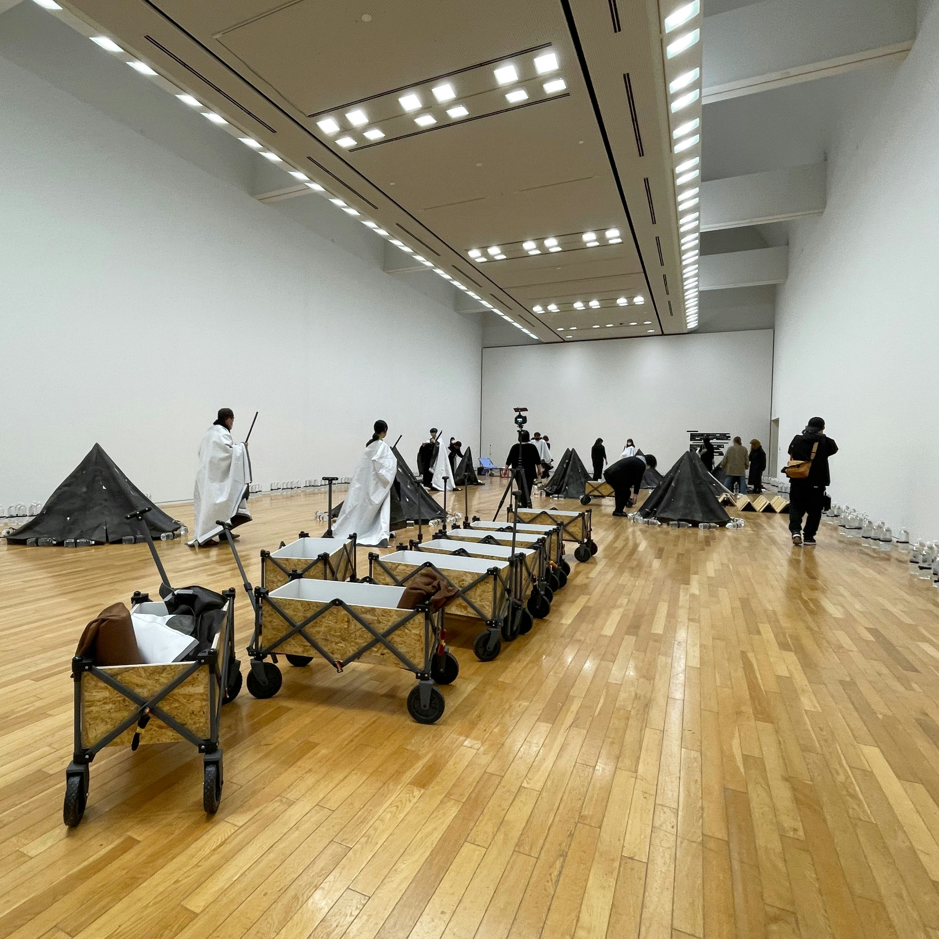 帰り際、自身がせっせと建造したテント(墓)が管理者らによって排除されているのを目の当たりにした。忘れられていく(風化していく)寂しさとともに新たな墓が建造される可能性を残す有機的な展示の様子が、長きにわたる人間の営みの歴史のようにも感じられた。