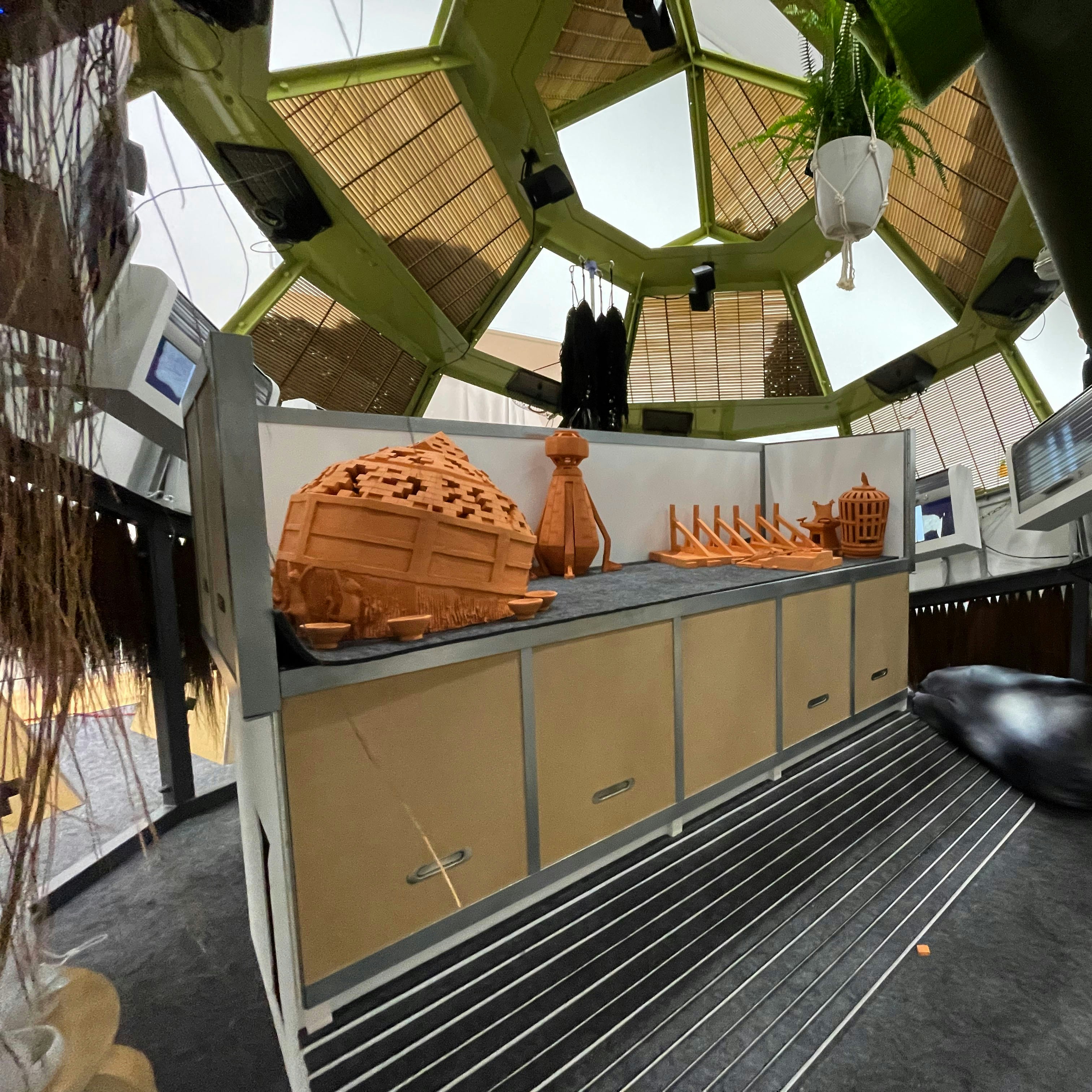 同展示室内には、「墓の管理者」の座席が端に設置されている。管理者の所持するVRゴーグルからは陵墓の領域を示すデータが複数表示されているようで、展示室のなかにおけるその領域を定めることができるのだという(鑑賞者は見ることができない)。