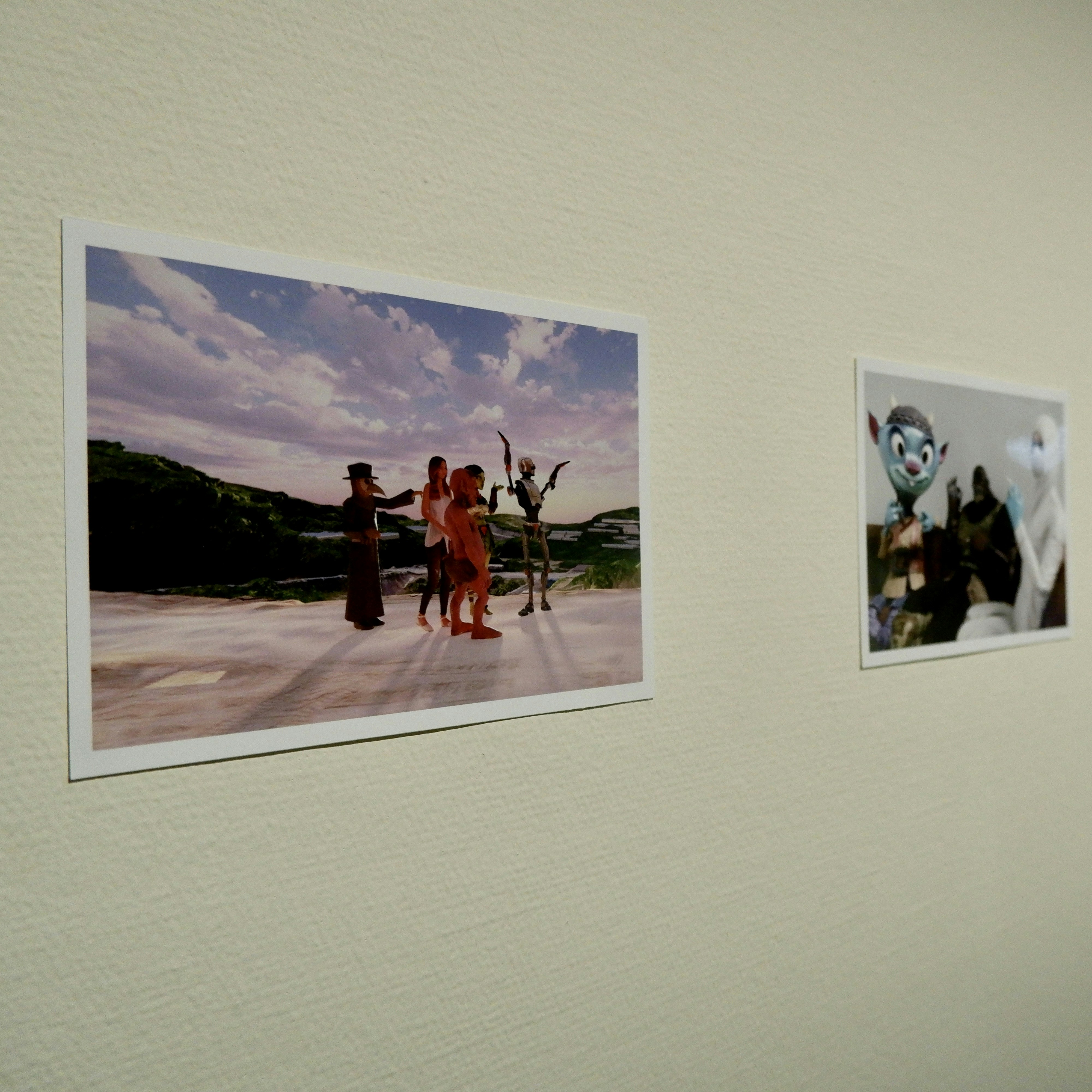 会場入って左手では、佐藤瞭太郎の作品を展示。「アセット」と呼ばれる既存の3Dモデルのみで構成された映像作品《Interchange》と、フリー素材の写真と「アセット」のキャラクターを組み合わせた写真作品《Dummy Life (#1–24)》は、どちらも実在する対象と仮想的なデータの間柄についての考察を促す。