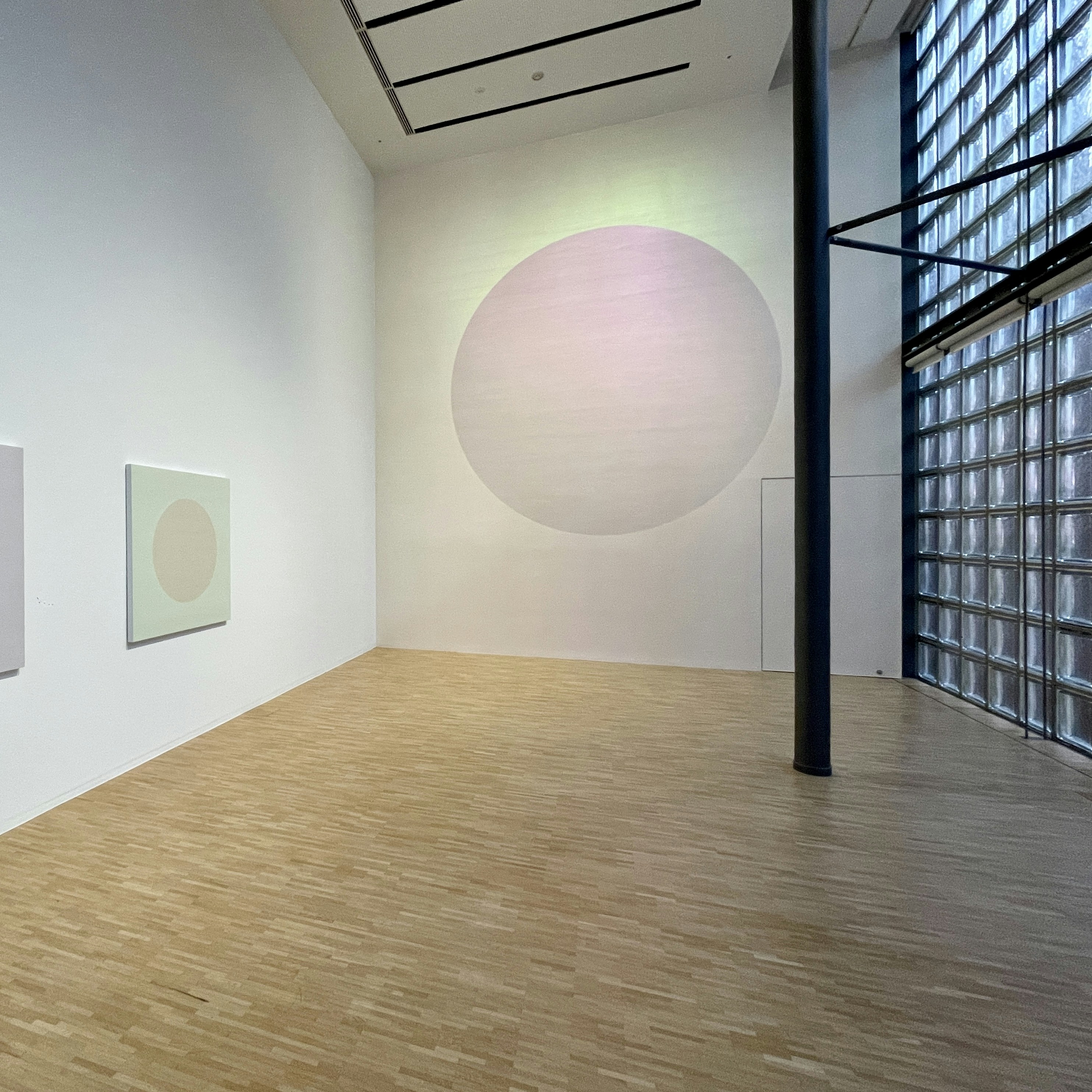 レンゾ・ピアノが設計し、自然光がガラスブロックに注ぎ込む特徴的な展示空間での展示について、フランシスは「太陽や光の動きで時間が入ってくることに気づいた」と話す。「光が変化していくことで作品の色の変化が起こる。そして、私たちが太陽を回っているこの惑星に存在するという、自分の内面にある時間の変化にも広げていく」。