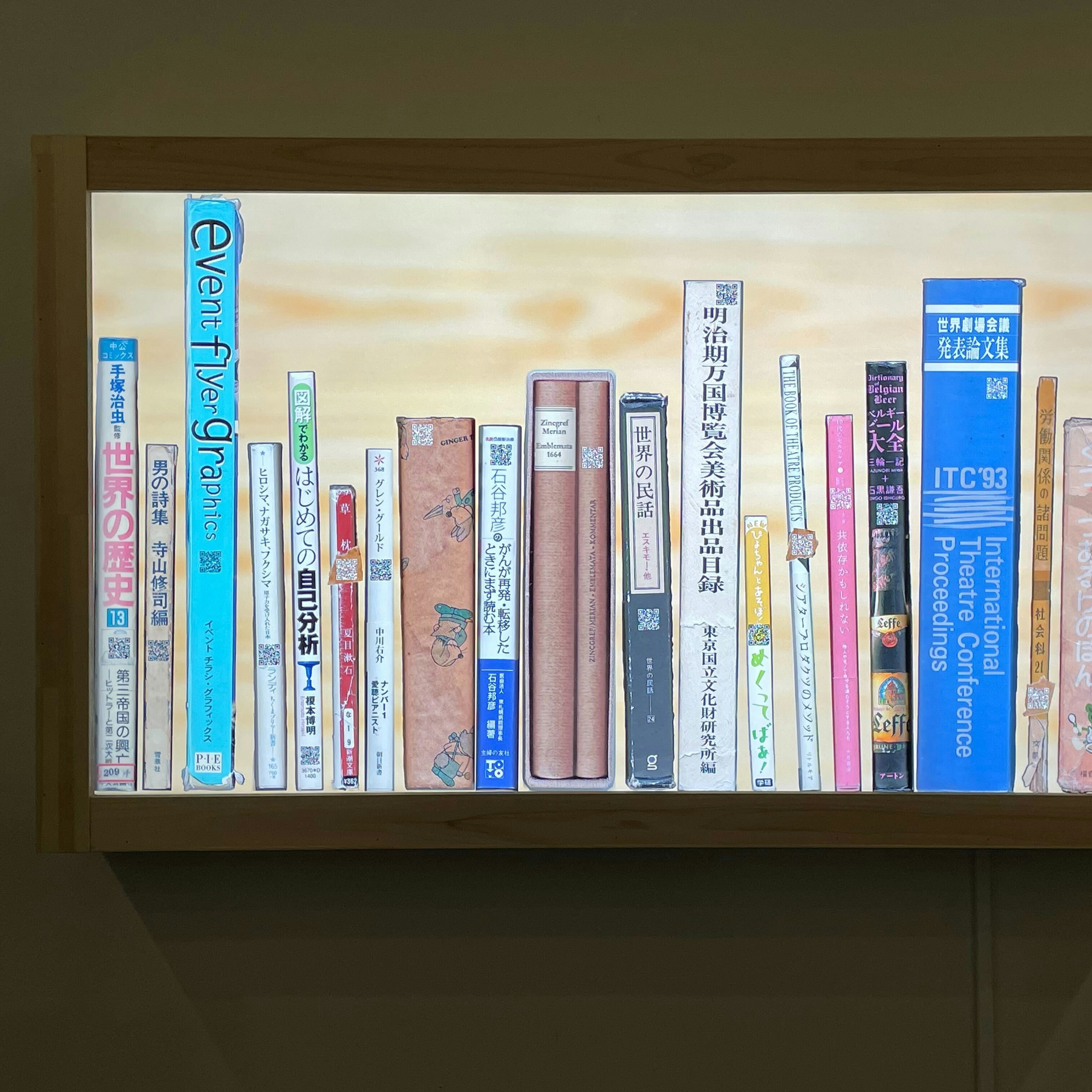 会場では受賞作品以外にも絵画に囚われない意欲的な作品が並ぶ。内田聖良の《余白書店のバーチャルな本棚》は映像上に書き込みや汚れで傷んだ古書の背表紙が並ぶ。内田はこの傷みを「人間の創造性によって生み出された唯一無二のものである」ととらえ、その価値を既存のサービスで流通させようと試みた。鑑賞者は各背表紙のQRコードを読み込むことで、内田がたどった本にまつわるエピソードを追体験することができるというインタラクティブ性が鑑賞者の関心を引いていた。